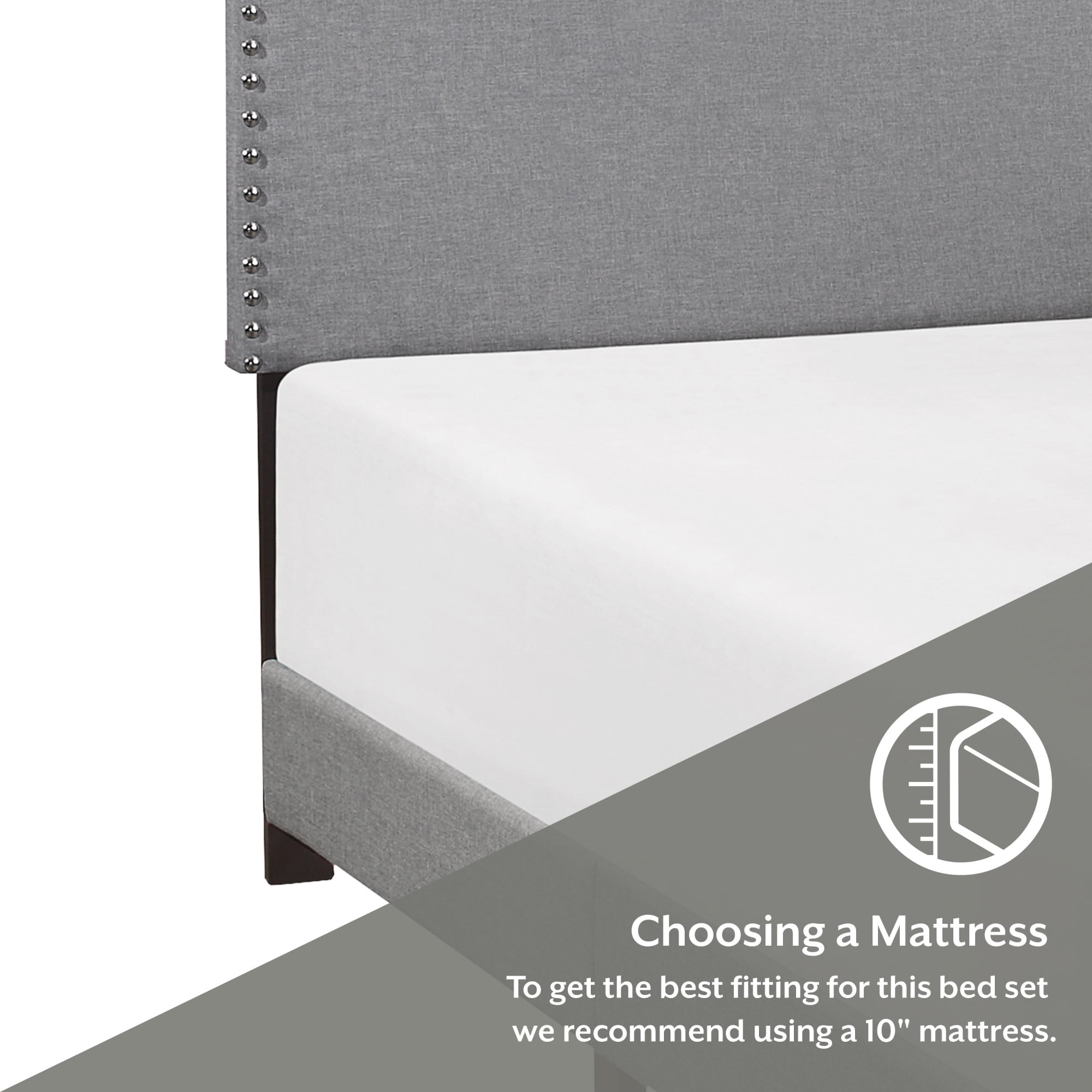 Skylar Nailhead Trim Upholstered Full Platform Bed, Glacier