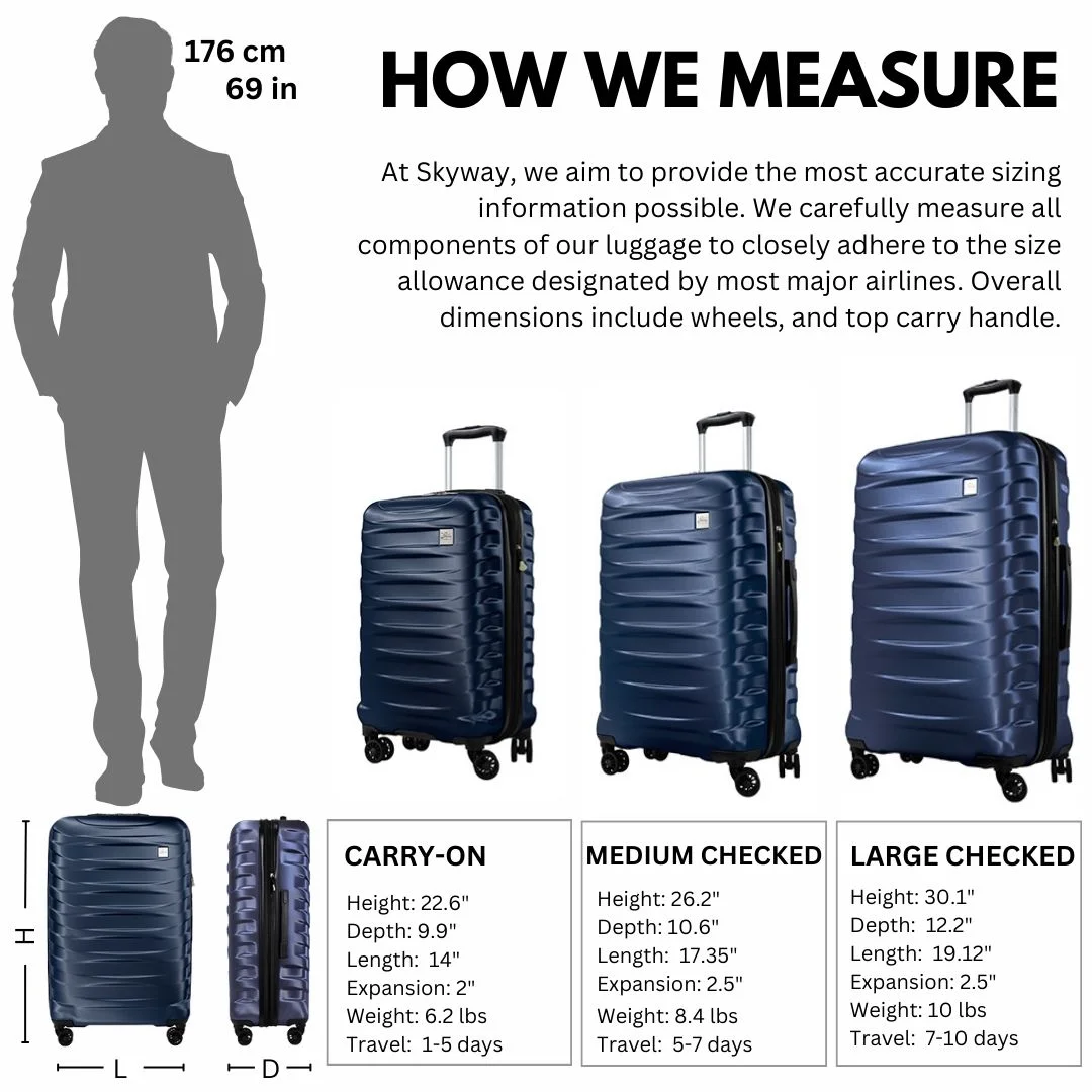 Skyway Luggage Roche Harbor Hardside 3-Piece Luggage Set with Spinner Wheels, Black