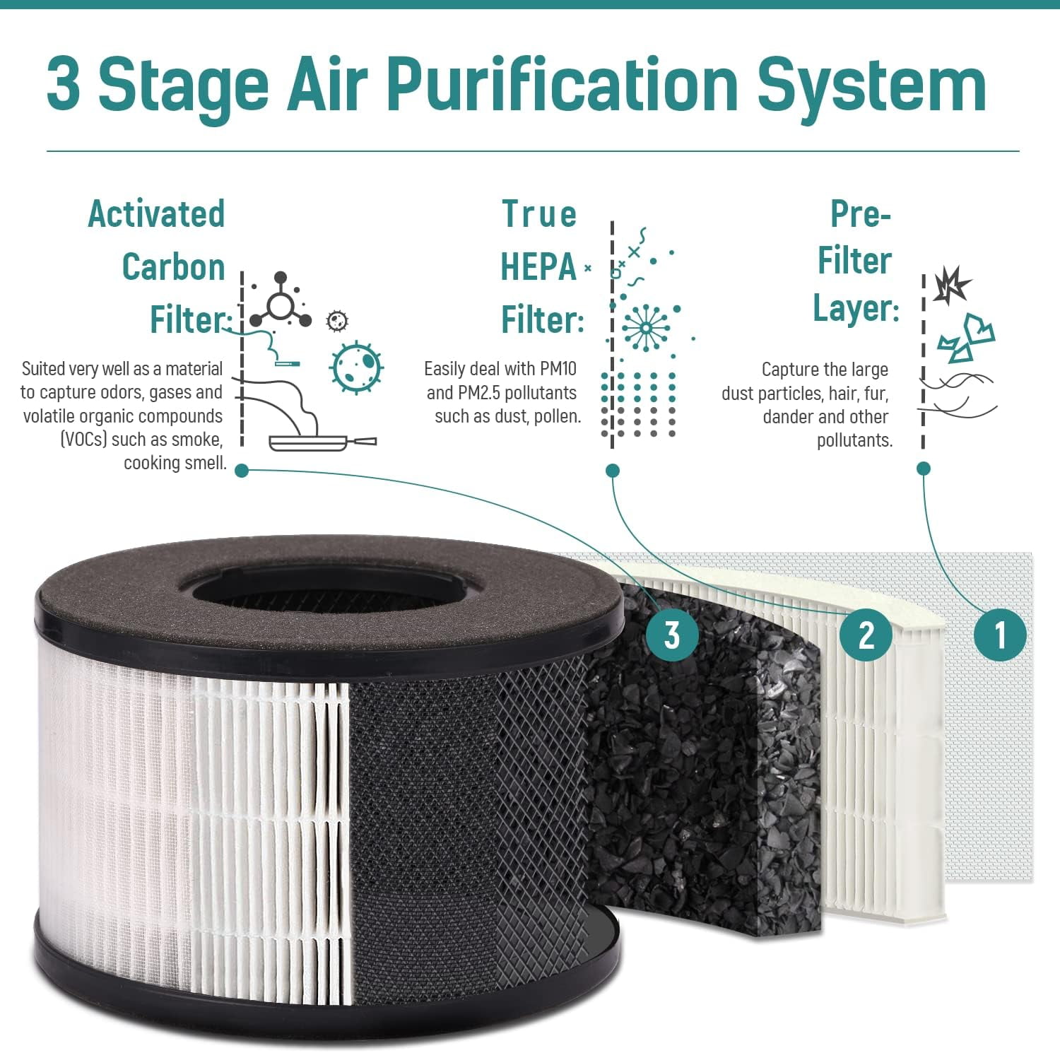 $60.19Our Air Purifiers for Bedroom Pets in Home, 2024 New Upgrade H13 True HEPA Air Purifier with Fragrance Sponge, Effectively Clean 99.97% of Dust, Smoke, Pets Dander, Pollen, Odors. Unique Elegant Design And Usability Not all things good have to be expensive. Our BS-03 H13 True HEPA air purifier is exactly at the end of the affordable spectrum without having to sacrifice on the filtration. The distinctive black exterior with a top turbine outlet is very pleasing. At a compact cylinder shape of 9.6 inches in diameter and 17 inches in height, it is highly suited for places with bad air. Complementing that is the lightweight 3.2 pounds that makes room to room purifying and for traveling an effortless task. Moving to usability, our air purifier front controls are clearly laid out and easily visible for a quick setup. You can adjust the fan speeds, reset the filter change indicator, lock the controls from children and pets, and light dimmer button that turns off indicator light for night use. Adding all that is a fragrance sponge slot underneath the turbine that you can insert your favorite essential oil (not inculded) like Citrus, Honeydew Melon, Musk, Vanilla, Orris or Vetiver to freshen the air. With its cylindrical base, the Slevoo air purifier can pull in air from all directions in your room. This provides better overall coverage. The air outlet is from the top surface of the air purifier. The outlet is slightly slanted downwards so that the air does not escape directly upwards. Clean air flows into your room smoothly as a result. VERY IMPORTANT: While the air purifier will arrive fully assembled, the filter will be encased in protective plastic. Unless this plastic cover is removed, the air purifier will not work even if it is turned on. If you need a filter after 3-6 months, please tell us via the order number