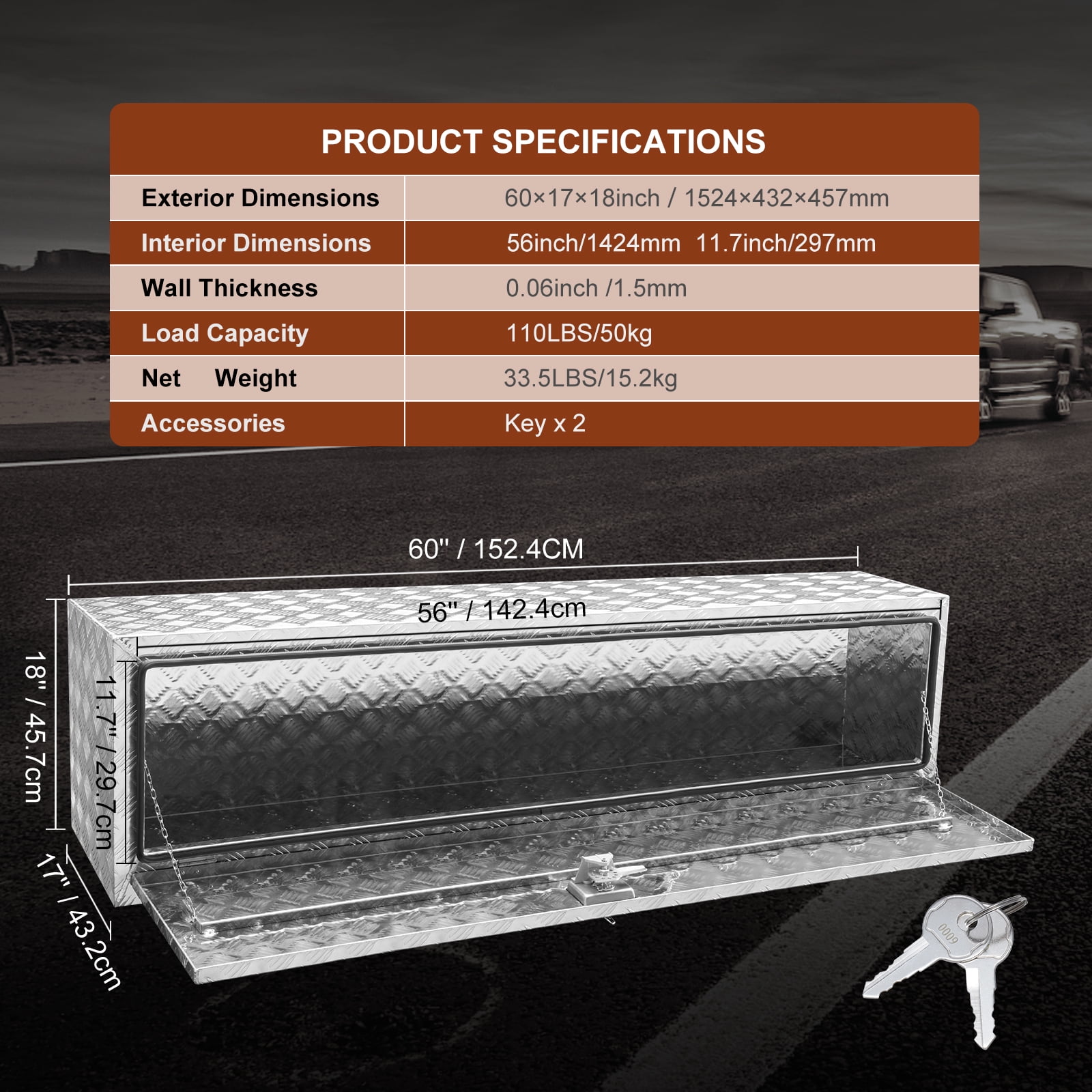 SKYSHALO Underbody Aluminum Truck Tool Box 60″ x 17″ x 18″ Trailer RV Tool Storage