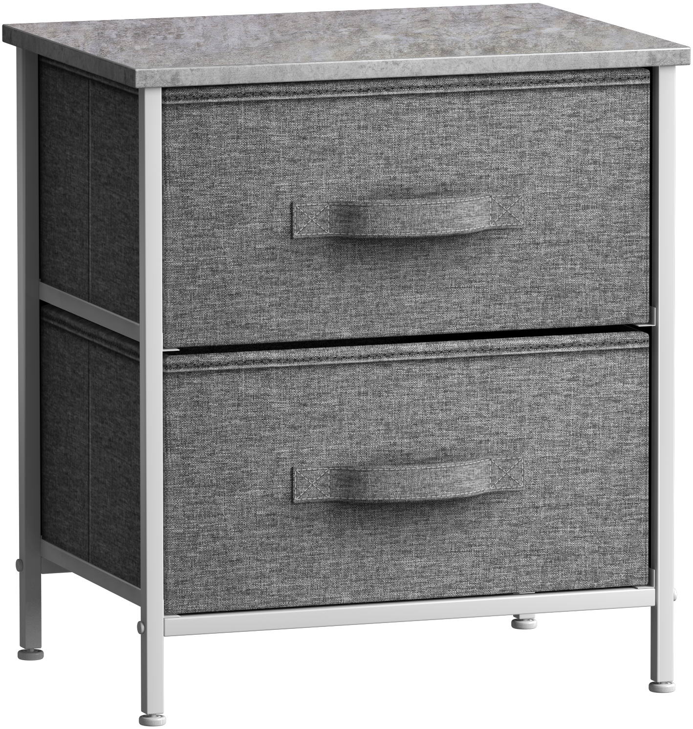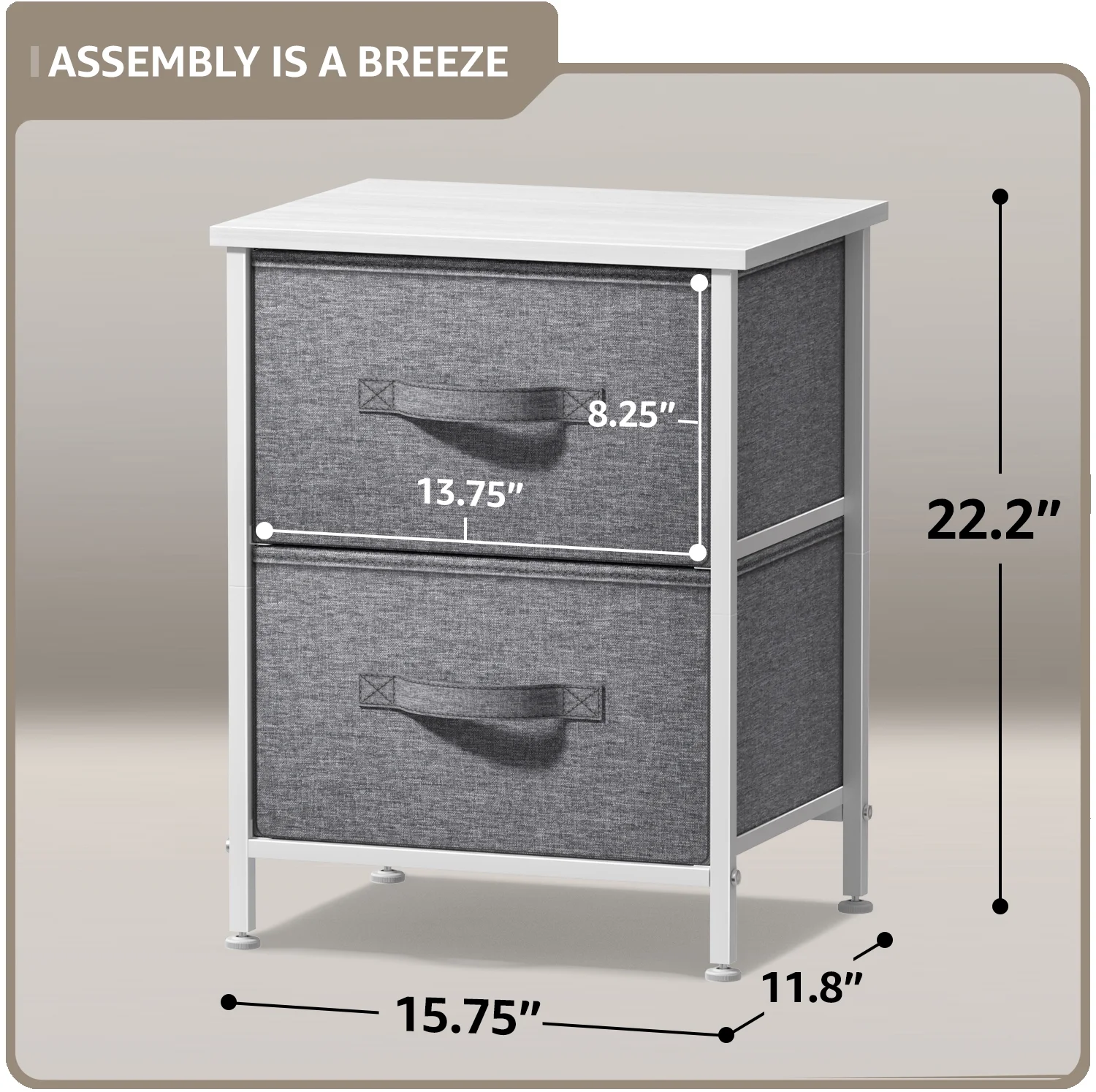 $38.69b Give your bedside essentials a cozy landing spot with the Sorbus 2 Drawer Side Table b br br This beautiful chest features a tabletop surface and pull out drawers to tuck away household clutter The thoughtful design is compact for small living spaces and works equally well by the bed or sofa Store anything from books reading glasses alarm clocks and other bedside necessities The lightweight frame makes this unit easy to transport around the home and when not in use simply fold the fabric drawers flat for storage Use alone as a single nightstand or pair with any drawer configuration from the Sorbus Furniture Collection With everything you need right by your side getting organized has never looked better br br b A great addition to any home small apartment or college dorm for instant storage b br br Choose this charming chest for a touch of function and understated appeal Set it in your master suite or guest room as a side bed table for devices magazines fresh flowers and more In the nursery the drawers help organize story books while the nightstand is the ideal height for a reading lamp As a living room accent table this unit provides sufficient space for remotes coasters and drinks perfect for a movie night in or entertaining guests during the big game br br b This unique storage solution is easy to set up with minimal assembly required b br br Showcasing a streamlined design this two drawer nightstand is portable lightweight and easy to assemble Hardware and instructions INCLUDED Each removable drawer includes a built in carry handle and made of breathable non woven fabric for soft closing storage Frame made of steel Tabletop surface made of MDF wood with smooth finish Wipe clean Suits most home d cor Available in different drawer configurations and color options Measures approximately 17 75 L x 11 87 W x 20 H br br