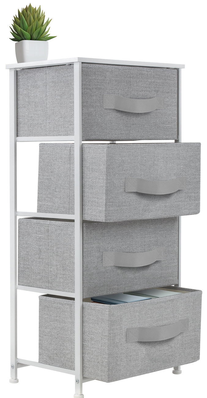 $45.83Sorbus Fusion Contemporary 4-drawer Chest, White. Showcasing a streamlined design, this four-drawer dresser chest stand is portable, lightweight, and easy to assemble. Hardware and instructions INCLUDED. Each removable drawer includes a built-in carry handle and made of breathable, non-woven fabric for soft-closing storage. Frame made of steel. Tabletop surface made of MDF wood with smooth finish. Wipe clean. Suits most home décor. Available in different drawer configurations and color options. Decorative accessories shown in image NOT INCLUDED. Measures approximately 17.75” L x 11.87” W x 37.50” H.