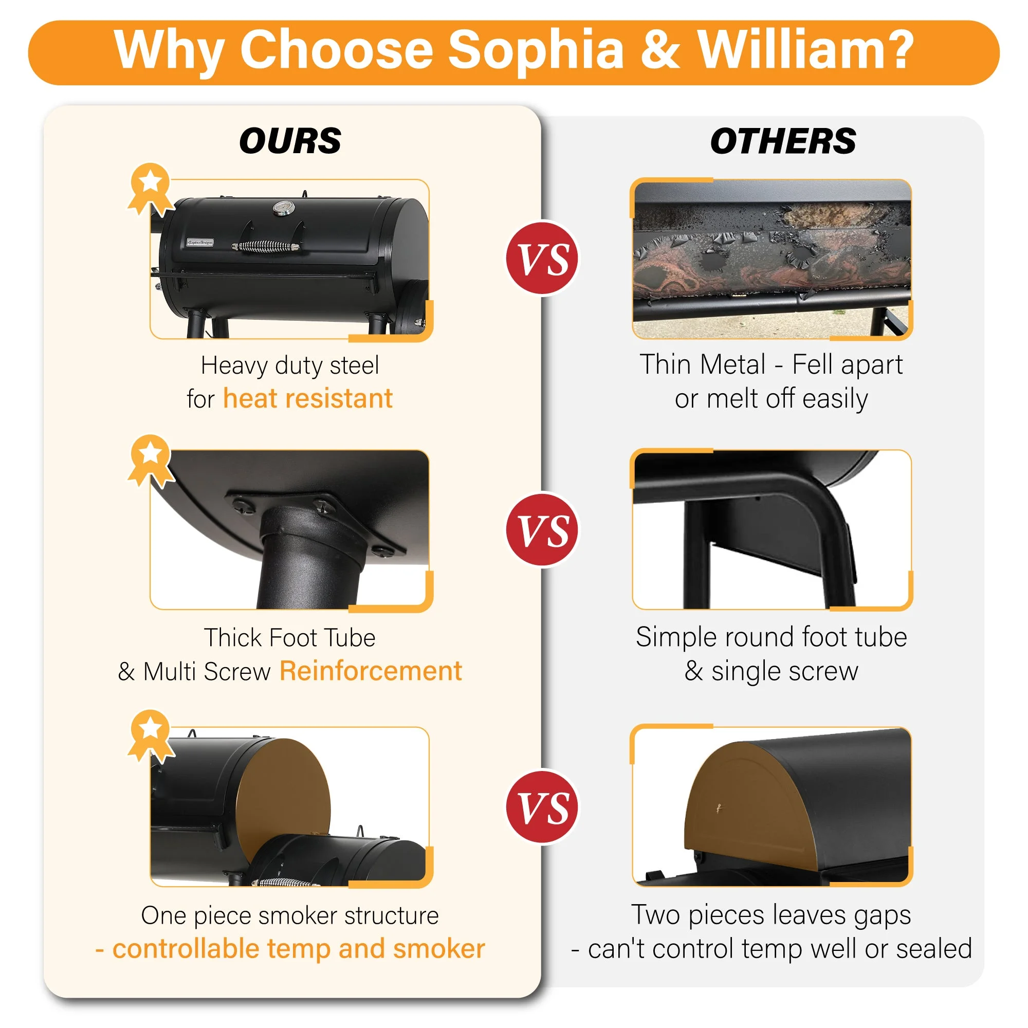 Sophia & William Portable BBQ Charcoal Grill with Offset Smoker, Black