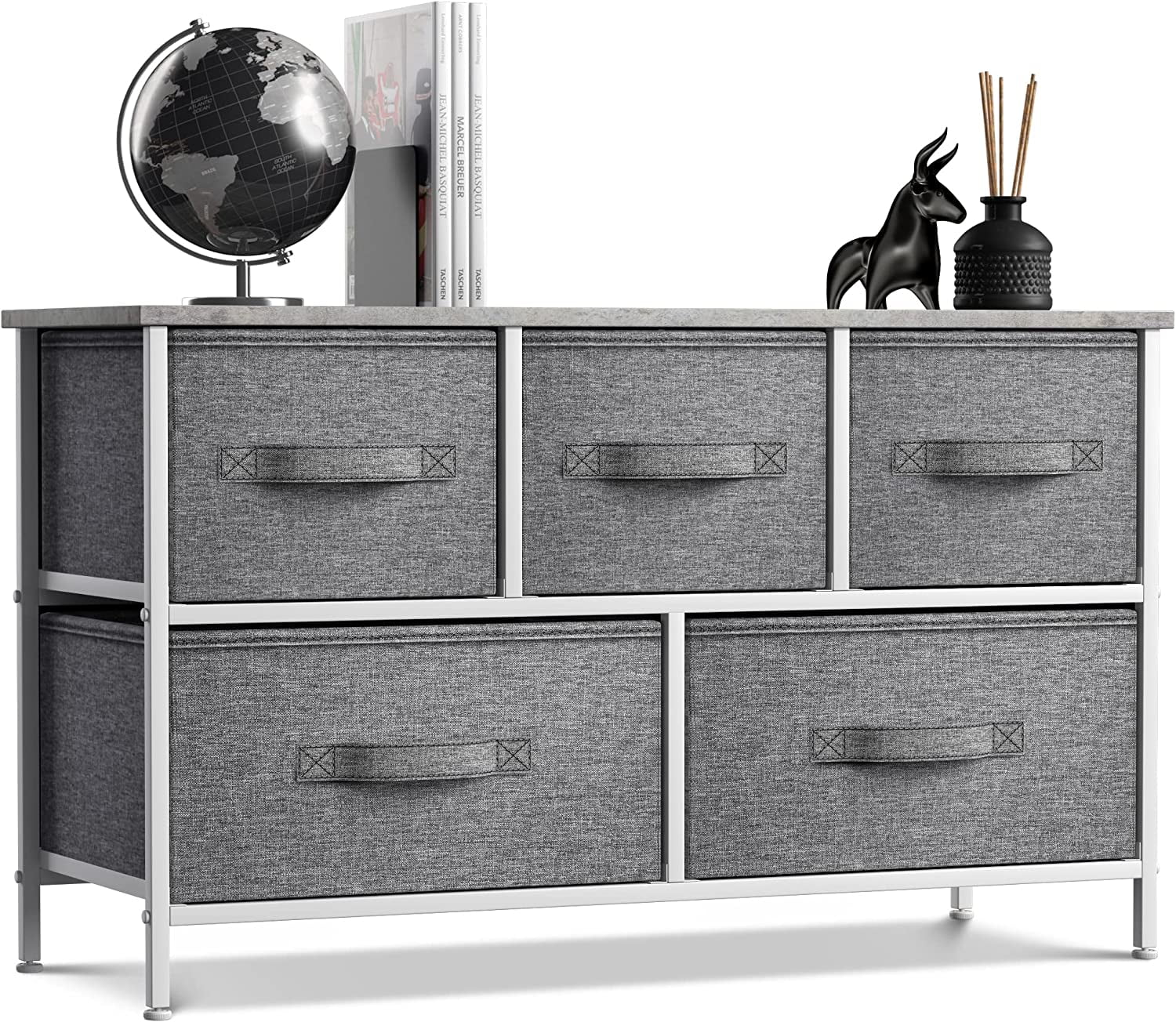 Sorbus 5-Drawer Dresser with Easy Pull Fabric Cube Bins, Gray