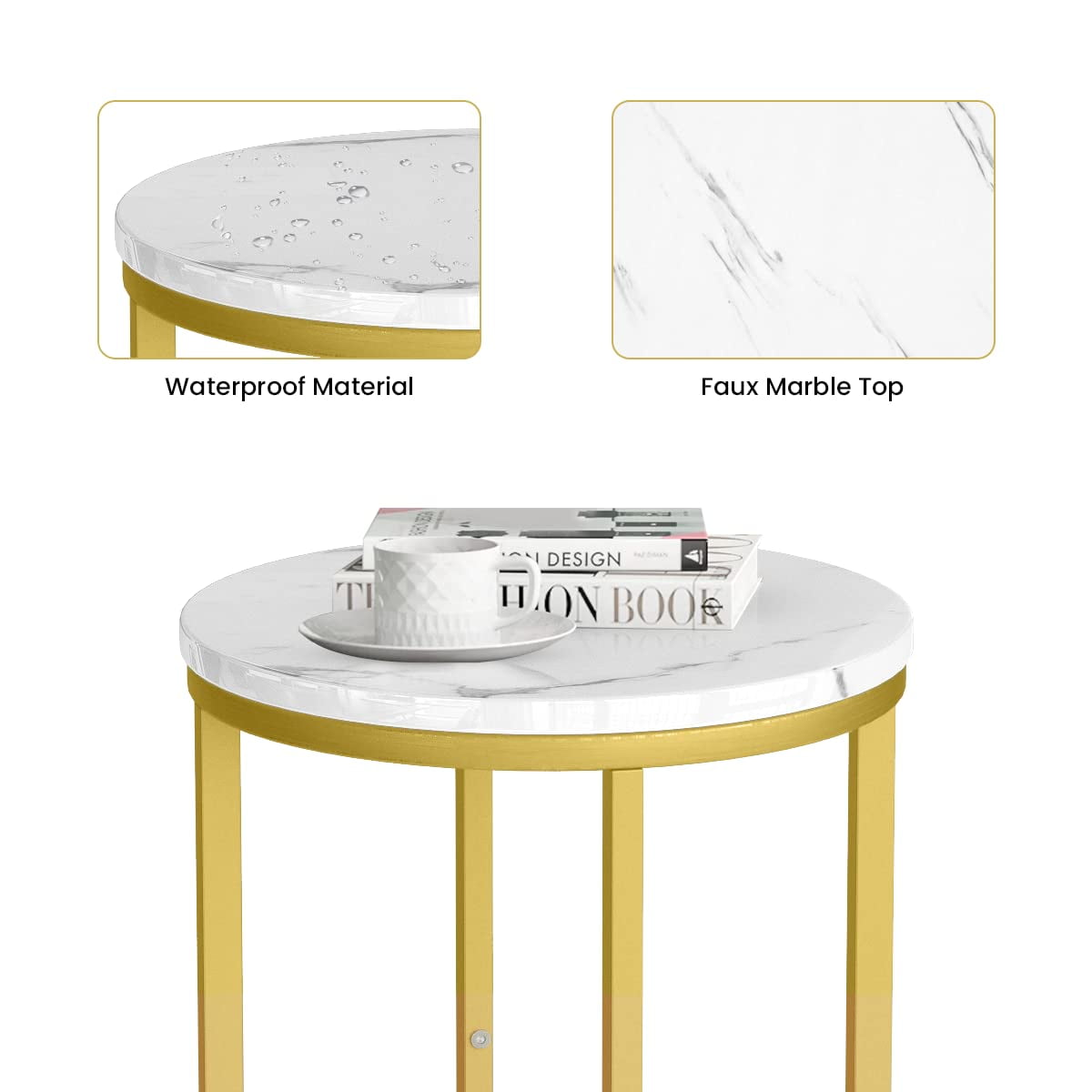 $51.59Product Dimensions: 15.75″D x 15.75″W x 24.41″H Color: White+Gold Material: MDF,Metal Weight Capacity: 55 lbs. Thickness of Table: 0.6”