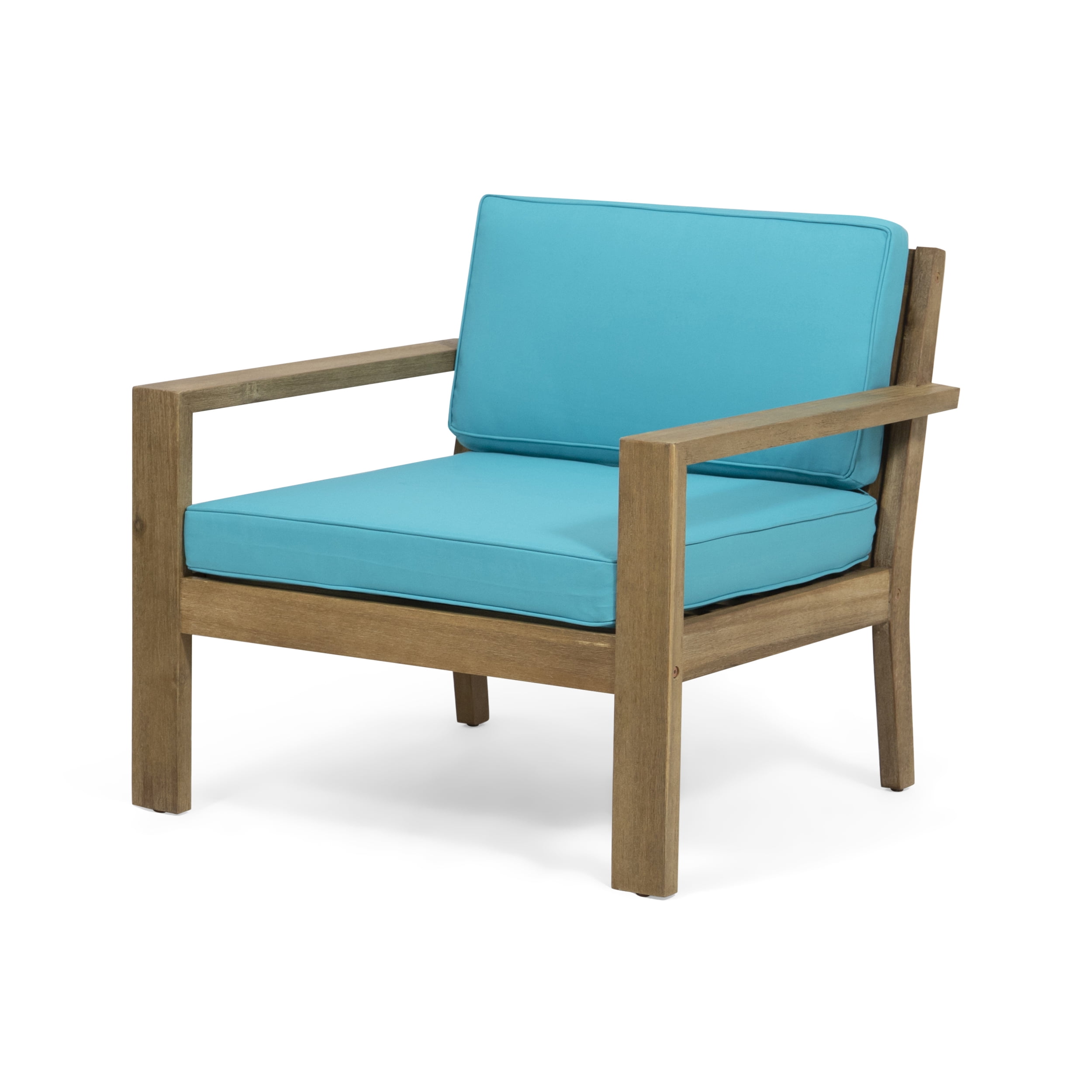 Ayaan Outdoor Acacia Wood Club Chairs with Cushions, Set of 2, Brushed Light Brown and Teal