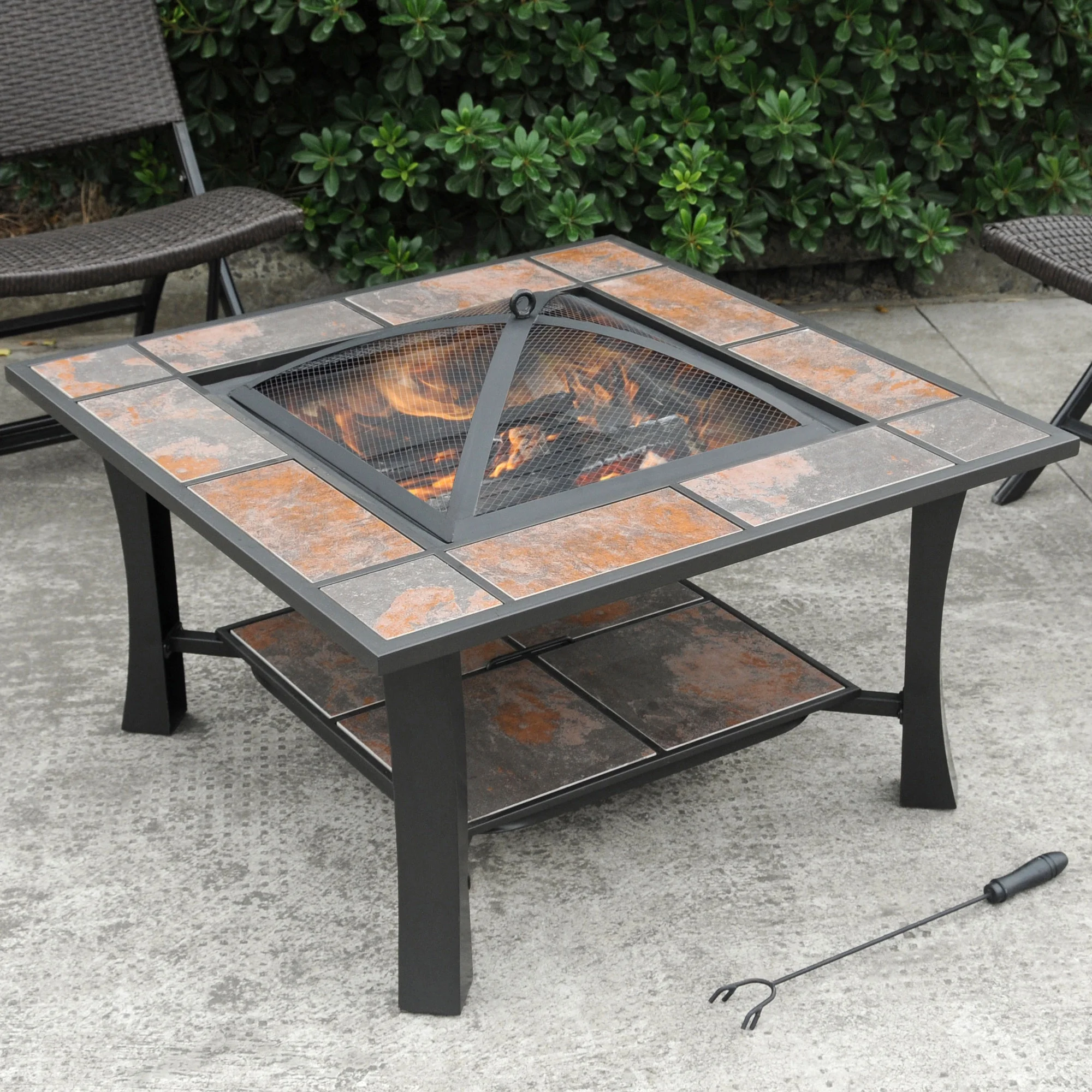 $137.59The Axxonn 32″ 2-in-1 Malaga Convertible Square Tile Top Fire Pit and Coffee Table offers versatile outdoor functionality. With a durable rust-resistant powder-coated frame and multicolored earth-toned ceramic tile top, this 22-inch tall unit can be used as a safe wood-burning fire pit or a stylish 17-inch high coffee table. Included safety features like a mesh screen lid, log grate, and poker ensure safe and enjoyable use. Crafted from steel and ceramic, this 32 x 32-inch square fire pit and table combination is perfect for adding warmth and ambiance to your patio or backyard.