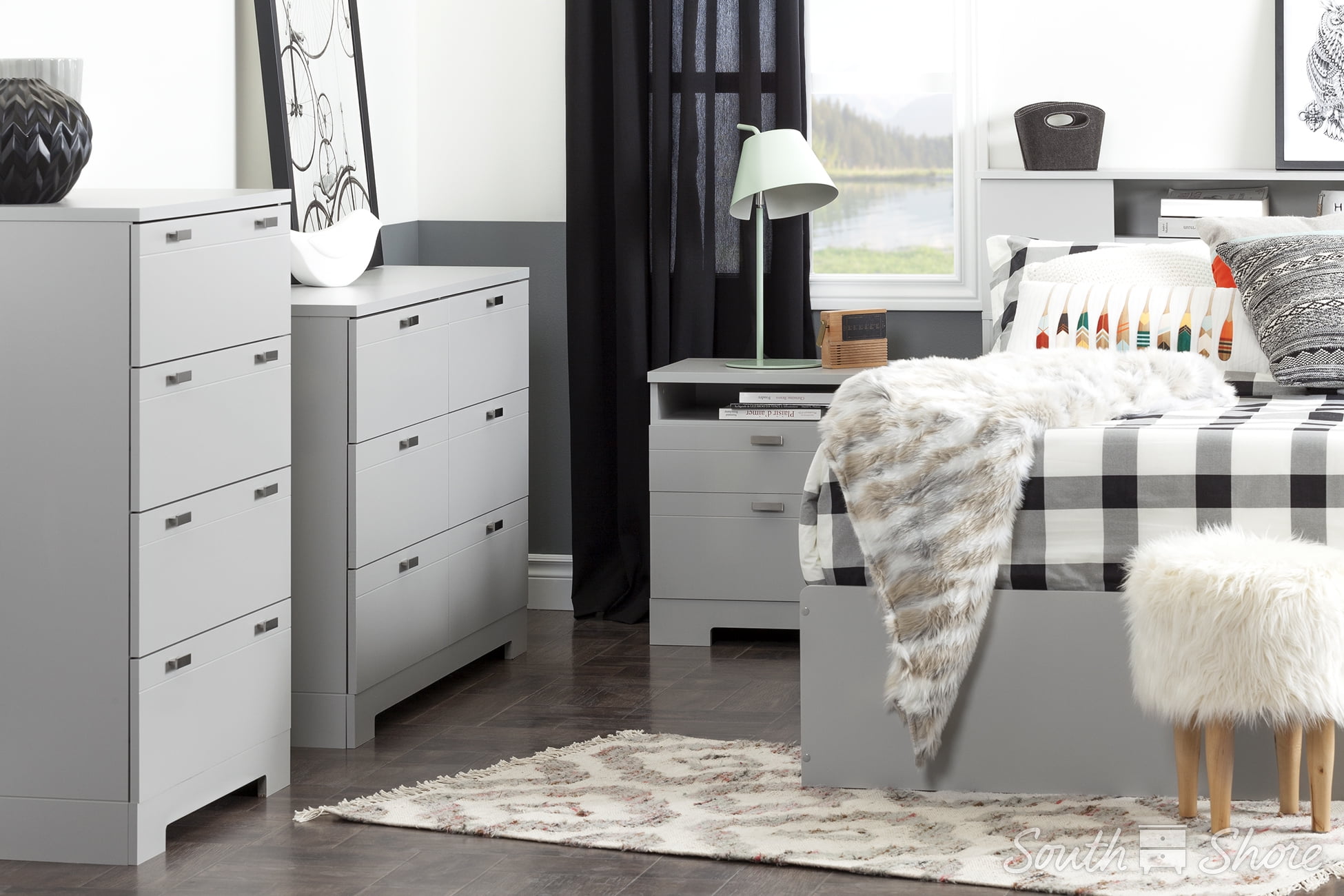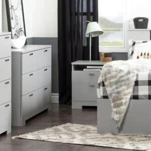 South Shore Reevo Nightstand with Drawers and Cord Catcher Gray