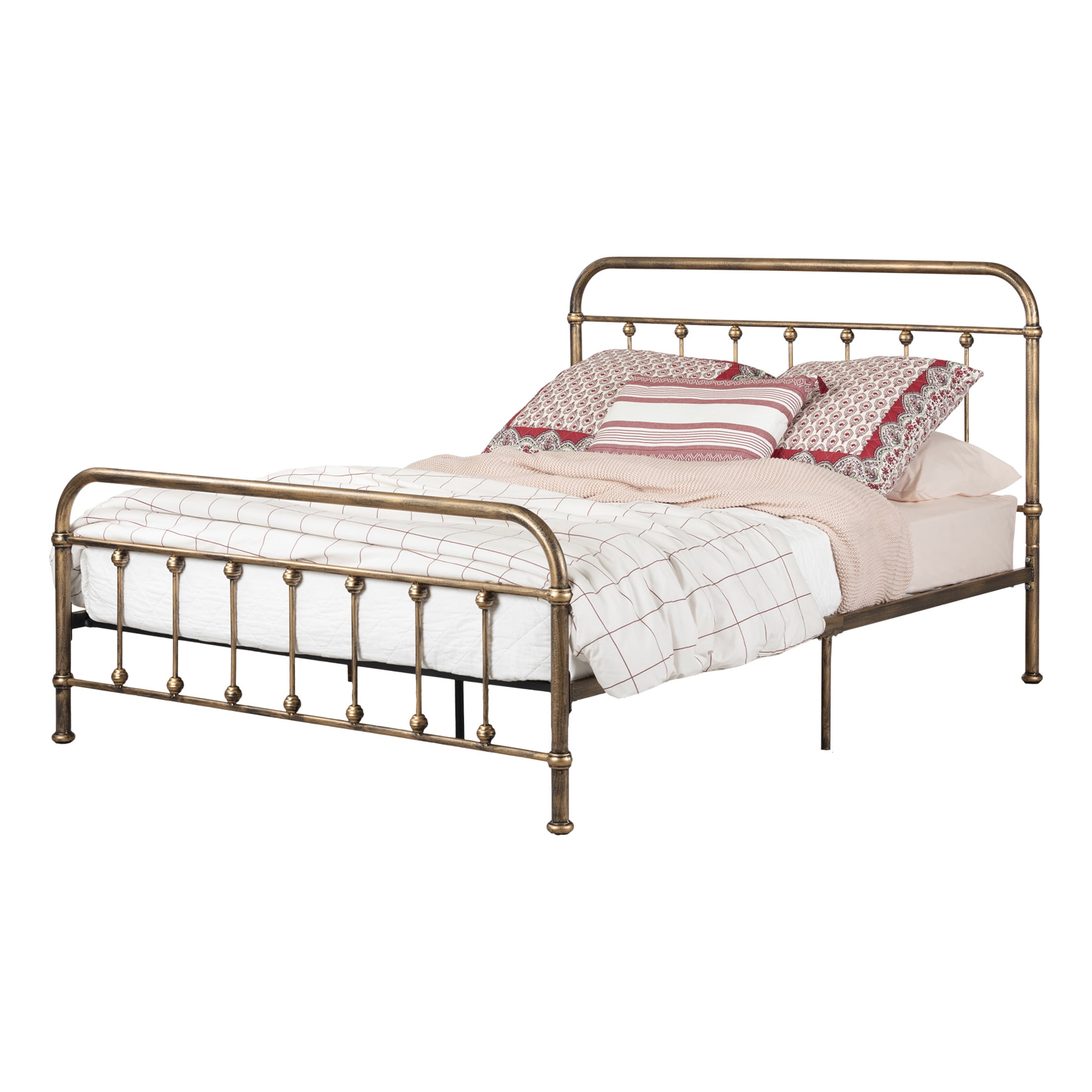 $253.92A country look in your homeRecreate the inviting atmosphere of a country house in your bedroom with the refined look of this metal bed. Its curves will give your decor a warm, friendly look. Opt for comfort with this Traditional style furniture that’s sure to bring you sweet dreams!An all in one bedThe solid construction of this bed means you don’t need a box spring. You can put your mattress (not included) right on the base… and you’re ready to sleep! So this bed is also a money saver. You get everything – headboard, bed, and footboard – in one box, which makes your life easier!Sturdy, durable constructionThe frame on this bed is made of sturdy metal and strong wooden slats, for effective airing underneath. Extra legs in the center give you better support.