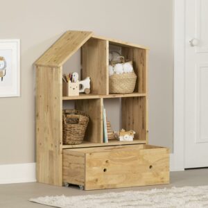 South Shore Sweedi, Scandinavian Bookcase with Storage Bin, Natural Wood