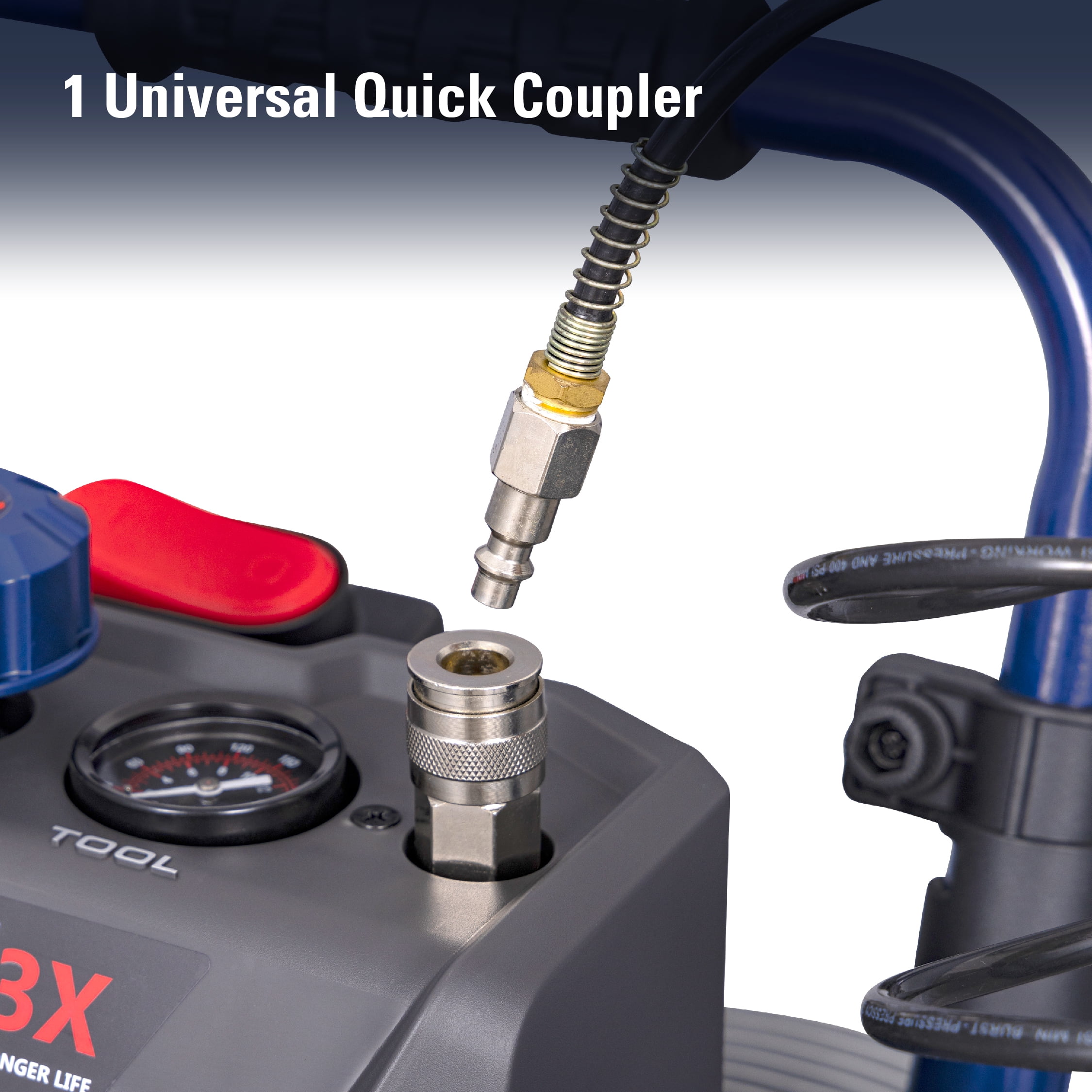 $208.97When you’re looking for the best shop air compressor portability is important. Look No further than the STEALTH 12 gallon professional compressor. Its 6 foot cord, vertical tank, heavy duty tires, and rubber grip handle make it easy to wheel from project to project. Whether you’re using it to refill air in tires, for impact drills or wrenches, or grease gun, our 12V, 1. 5 HP air compressor gives you maximum capability. And Stealth’s innovative quiet systems means less noise than competing compressors. Measuring 20 inch/ 18 inch/ 29 inch, and weighing 95 lbs. You can store the portable electric air compressor in your garage, work-site, or home shop.