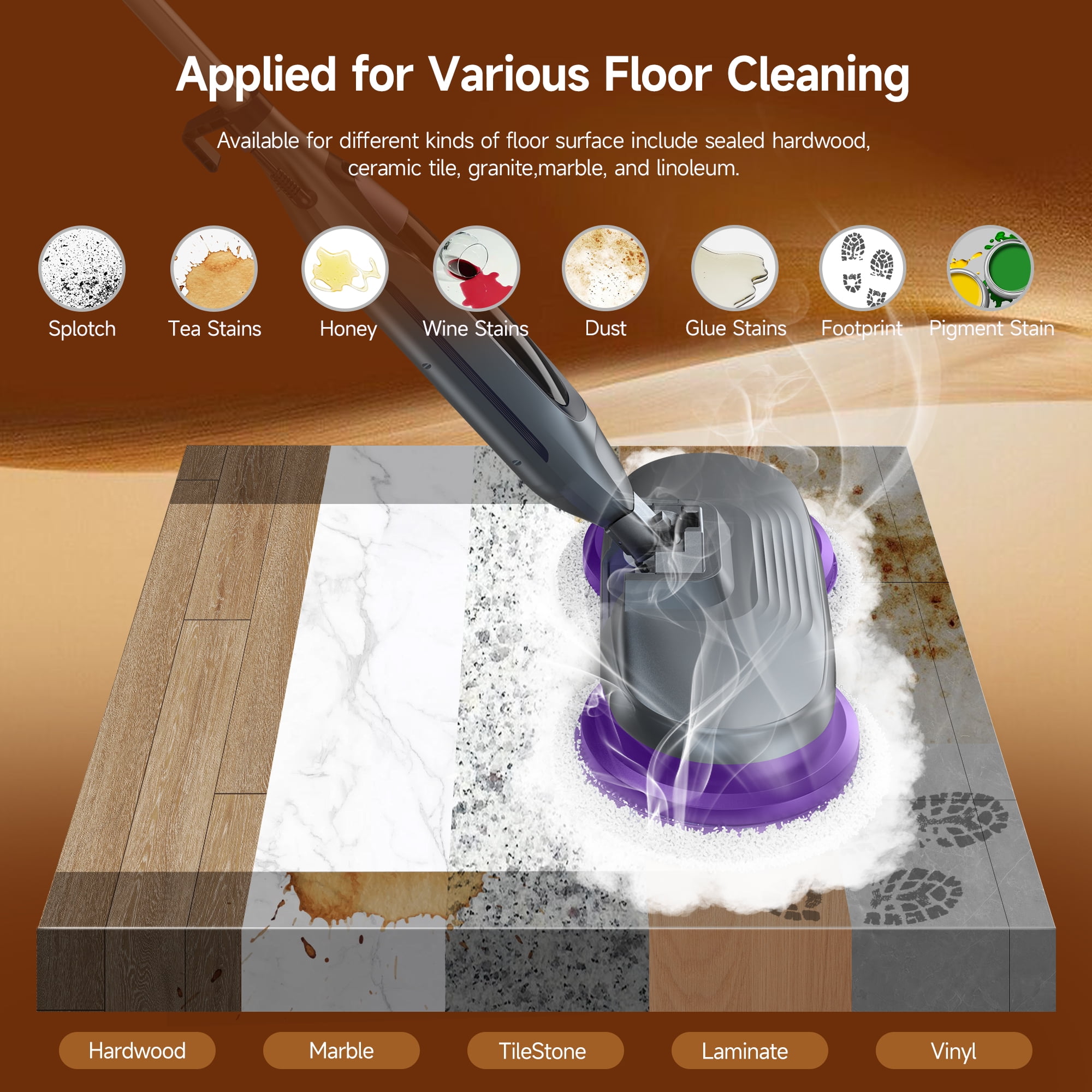 Steam Mop with LED Headlights, Dual Scrubbing Head, Adjustable Steam Control, Anti-Slip Swivel Head