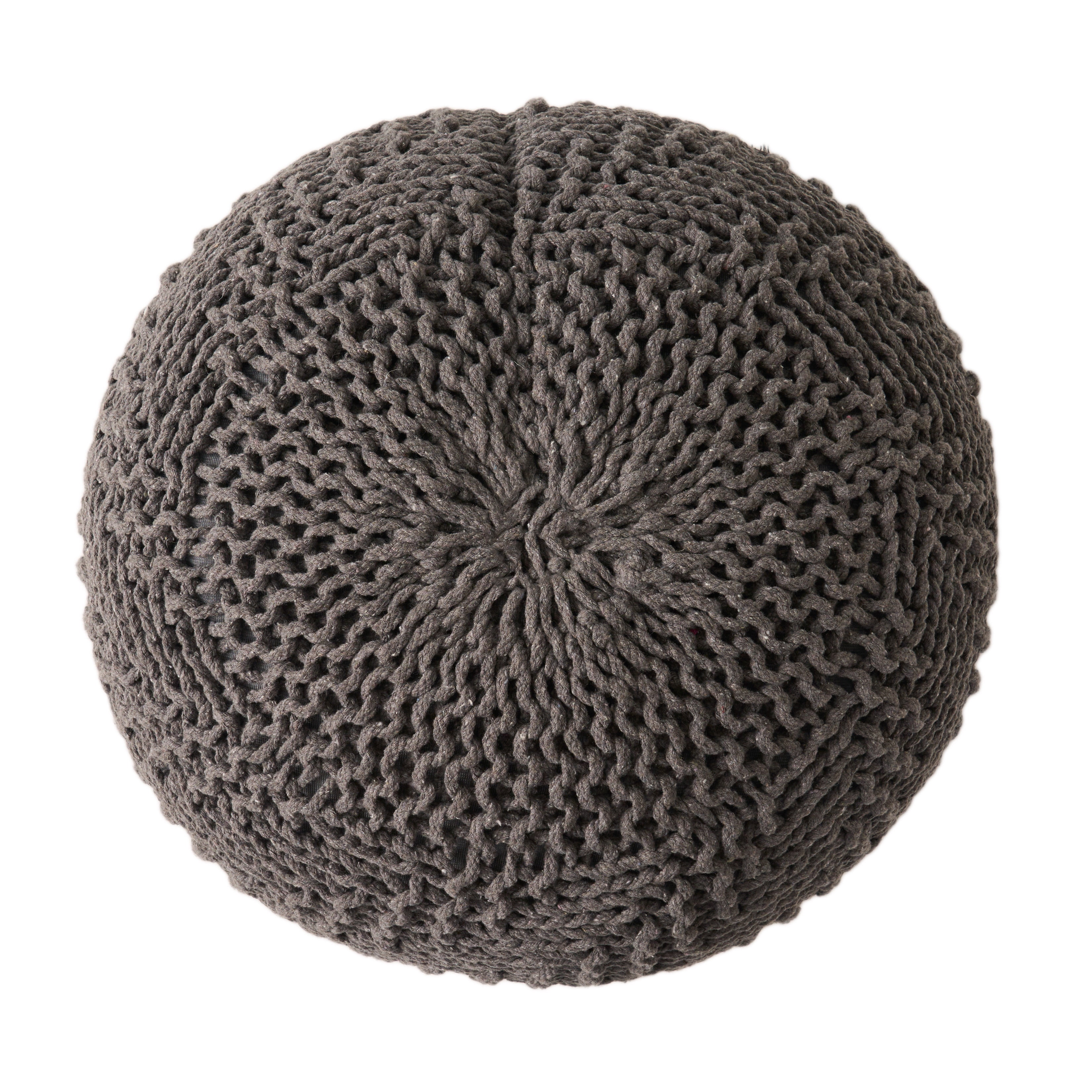 Statham Cotton Knitted Round Pouf, Dark Gray, 20″ x 14″