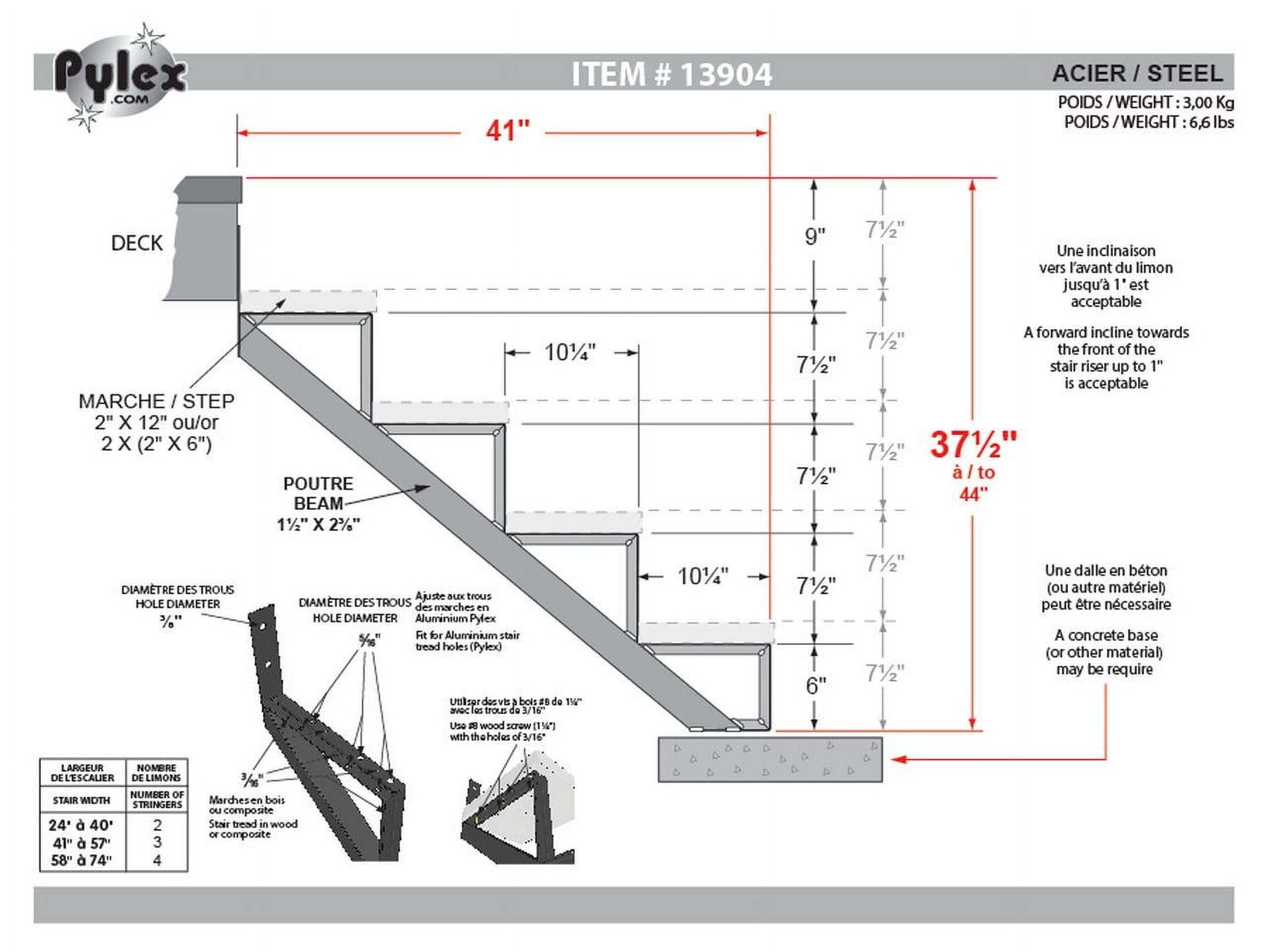 $42.99Staircase width 41-inch and less: 2 risers recommended. Staircase width 42-inch to 57-inch: 3 risers recommended. Staircase width 57-inch to 74-inch: 4 risers recommended.The easiest way to build a solid and lasting staircase. Light and easy to manipulate, this stair frame is quickly installed. Designed in one piece, it is ready for steps. No more complicated assemblies! it will highlight your staircase and add a finishing touch to your house.