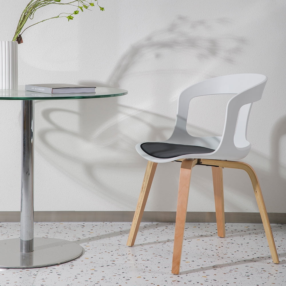 STARWAY White Dining Chairs Set of 2, with Plywood feet and Polypropylene Shell, with Cushion