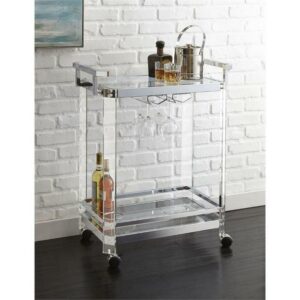 Steve Silver Aerin Modern Acrylic Server or Bar Cart with Wheels, Clear