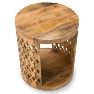 Steve Silver Alamo Indoor Industrial Wood and Nailhead 24″ Height Round End Table, Gray