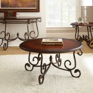 Steve Silver Crowley Indoor Wood Traditional Round 20″ Height Coffee Table, Cherry