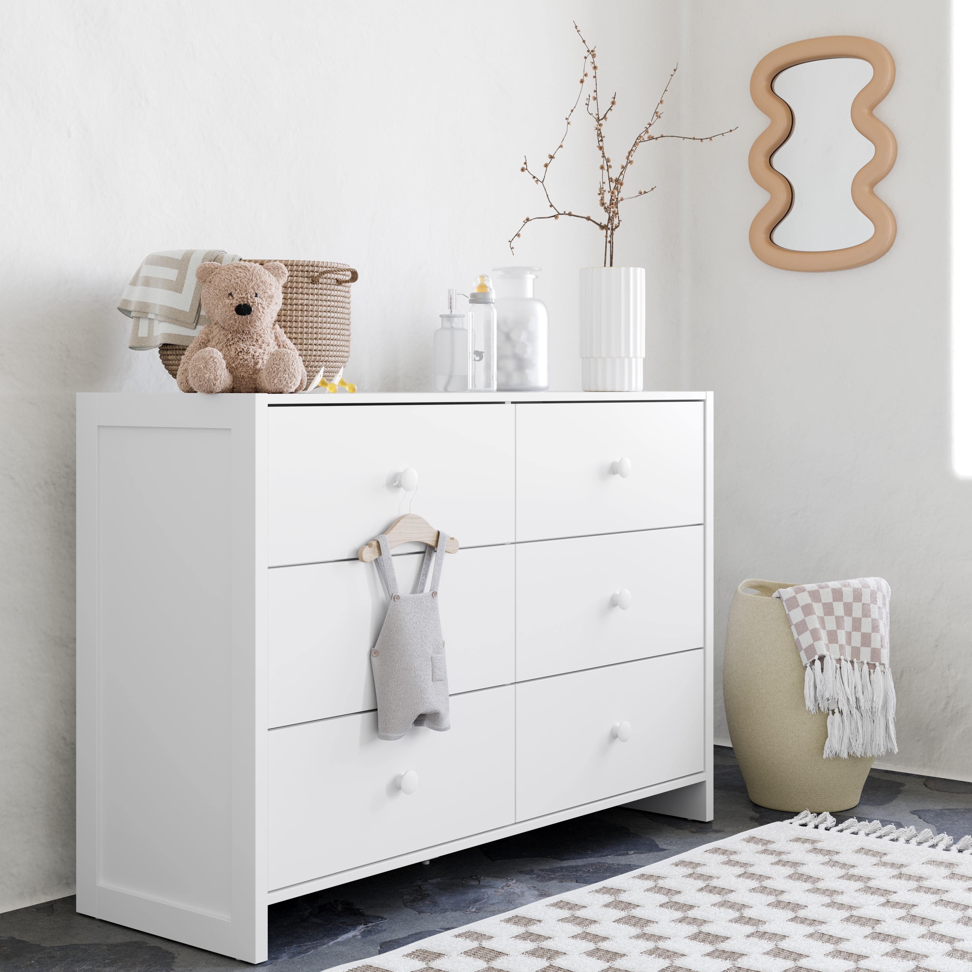 Storkcraft California 6 Drawer Nursery Wood Double Dresser, White