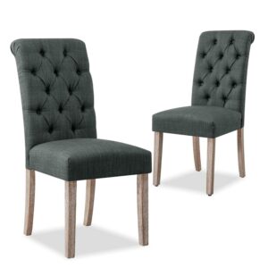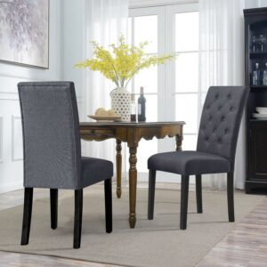 Subrtex Dining Chairs Linen Fabric Chairs for Kitchen Dining Room Set of 2, Dark Gray