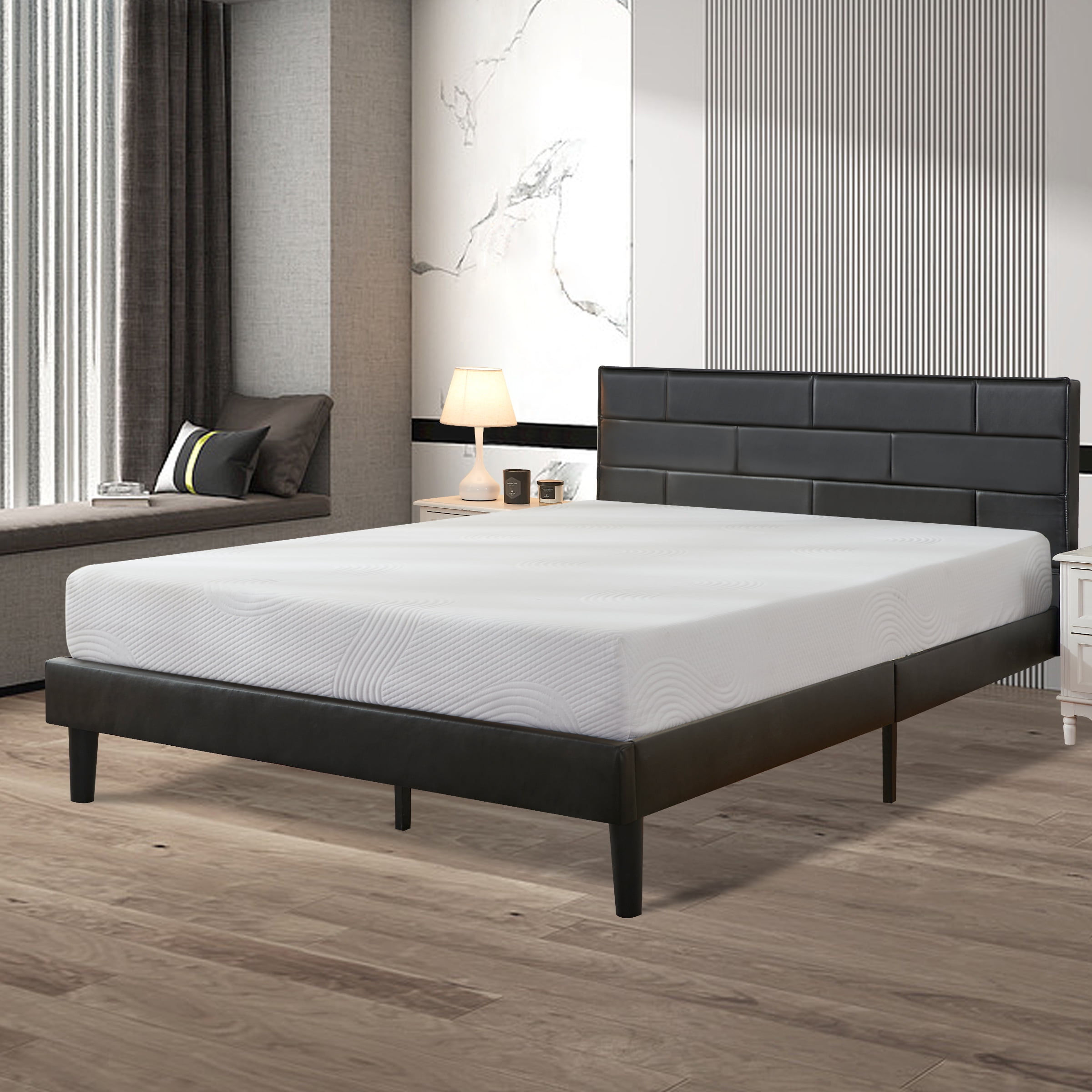 Subrtex Full Platform Bed Frame with Removable PU Leather Upholstered Headboard, Heavy-Duty Wood Slats