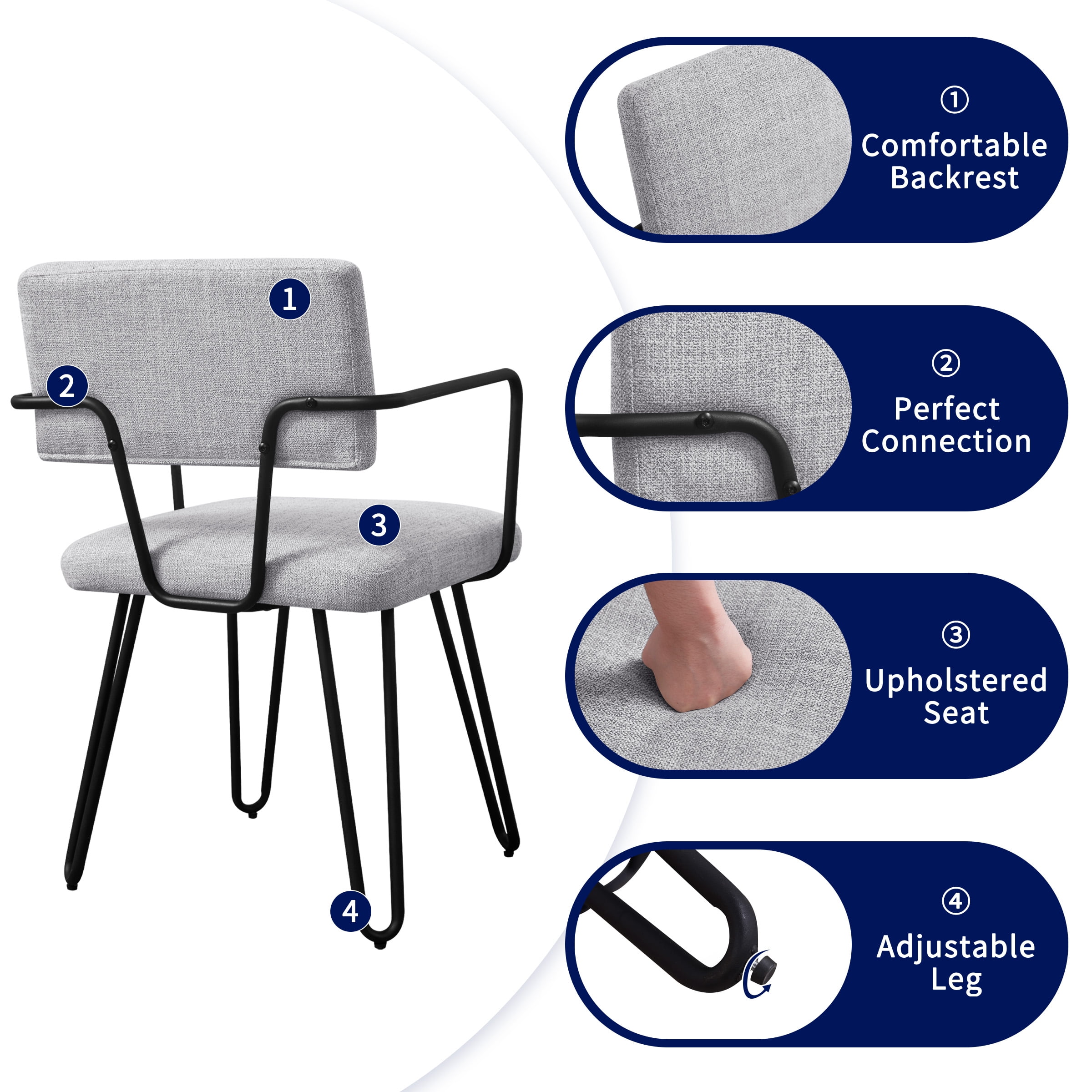 $90.29Our iron dining chair offers sitting comfort through an upholstered seat design with high density foam padding and breathable linen fabric wrap, featuring a solid and sturdy iron frame and a maximum load capacity of 250 lbs. Ergonomically designed to fit the body curves perfectly, reducing back pressure and fatigue and providing armrests for resting your arms.