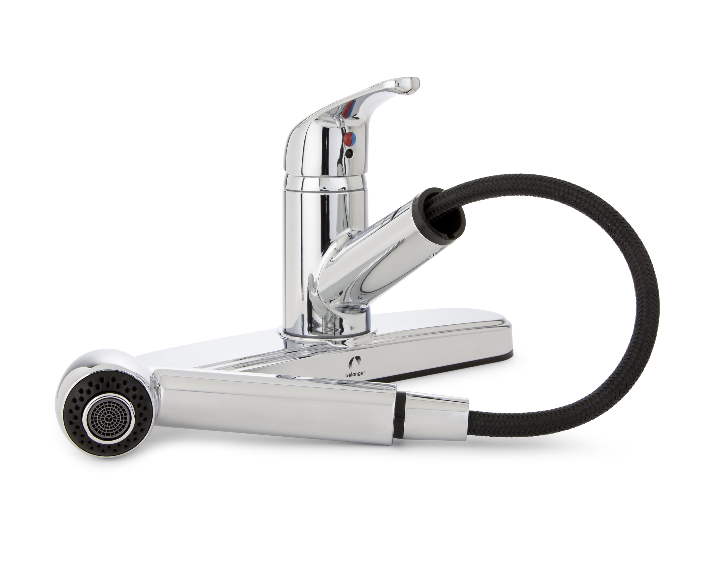 $30.29Belanger affordable faucet series is a great fit for any home, rental property, apartment, RV, camper, or business where an affordable faucet with a classic look is needed. This kitchen faucet features a pull-out spray head with single handle control in polished chrome (non-metallic construction). It fits the standard kitchen sink design with 8-in spacing, 3-hole installation and an eco-friendly 1.8 GPM flow rate.