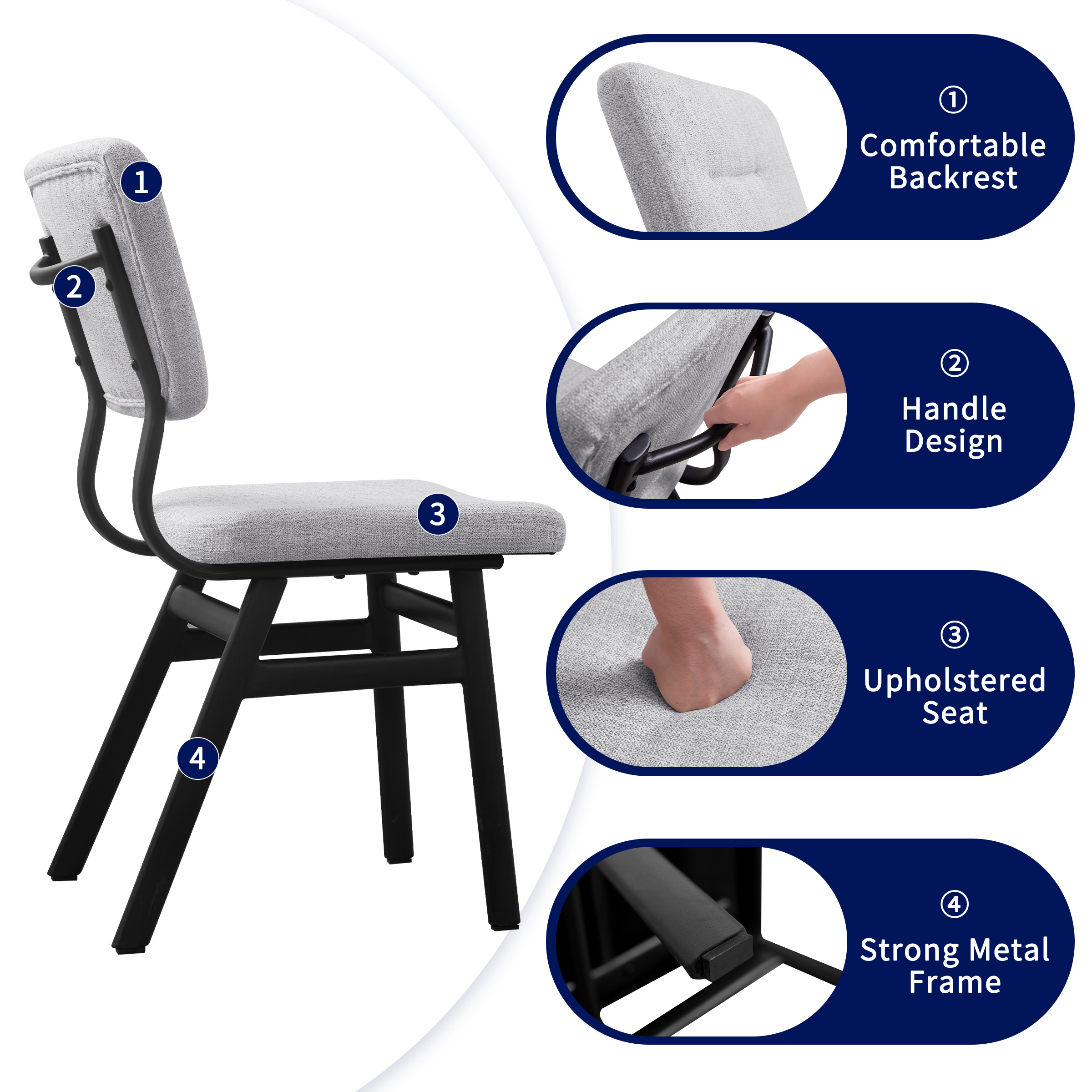 $94.59Our iron dining chair offers sitting comfort through an upholstered seat design with high density foam padding and breathable linen fabric wrap, featuring a solid and sturdy iron frame and a maximum load capacity of 250 lbs. Ergonomically designed to fit the body curves perfectly, reducing back pressure and fatigue and bringing better relaxation.
