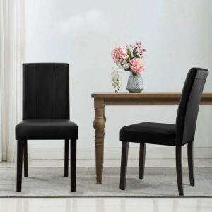 Subrtex Urban Style PU Leather Waterproof Dirt resistant Dining Chair, Set of 2, Black