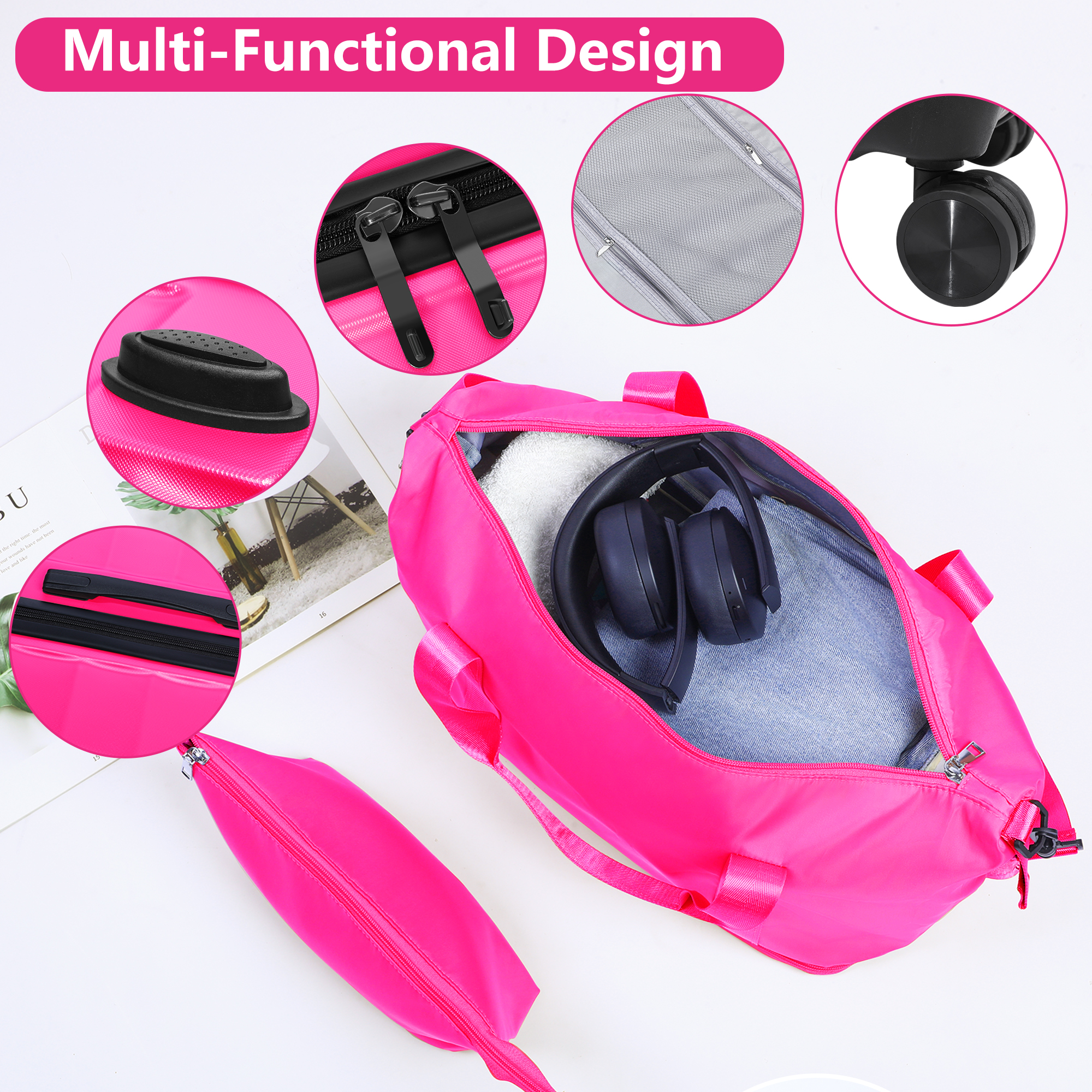 SUGIFT 20in Suitcase Set 3 Piece Carry On Hardside Luggage with TSA Lock Spinner Wheels Rose Red