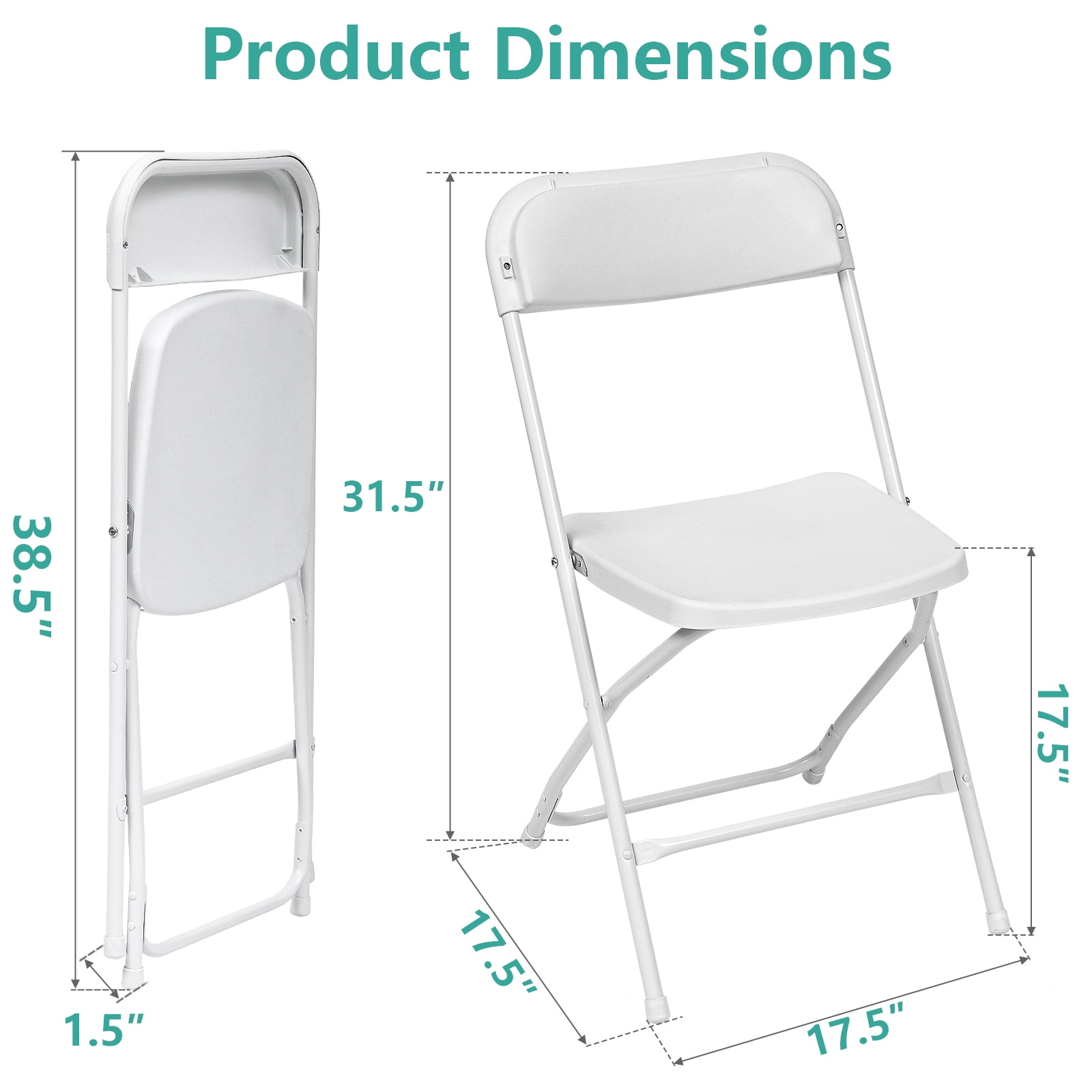 $180.59Original price was: $180.59.$137.58Current price is: $137.58.Durable and Attractive: Crafted for long-term use, our chairs feature a thick HDPE seat and back with a white-coated, sturdy frame, supporting up to 350lbs and complementing any decor. Ideal for Any Event: Our folding chairs are perfect for conferences, parties, and commercial events; easily portable for both indoor and outdoor use with no assembly required, making them a practical choice for any occasion. Anti-Skid Design: Equipped with rubber feet, these white folding chairs prevent floor damage and ensure stability, minimizing scuffing and keeping the chair securely in place. Portable and Space-Saving: These lightweight sillas para fiestas require no assembly, fold and unfold in seconds, and can be easily stored away, saving valuable space and offering convenience. Perfect for Any Event: Versatile, indoor/outdoor use. Comfortable Seating Experience: Ergonomically designed, these adult folding chairs provide strong back support and relieve spinal pressure, ensuring comfort during long events.