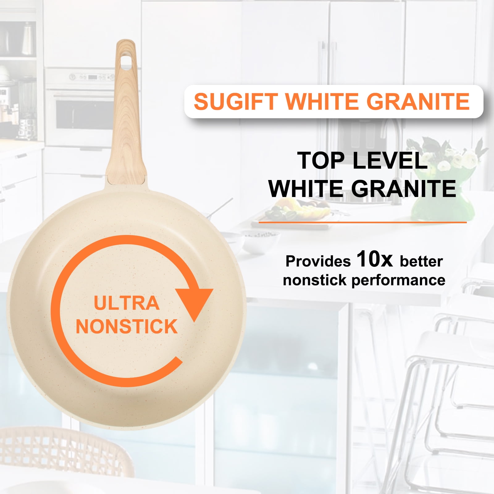 Sugift 1 Piece Nonstick Aluminum and Granite Pot and Pan Set, White