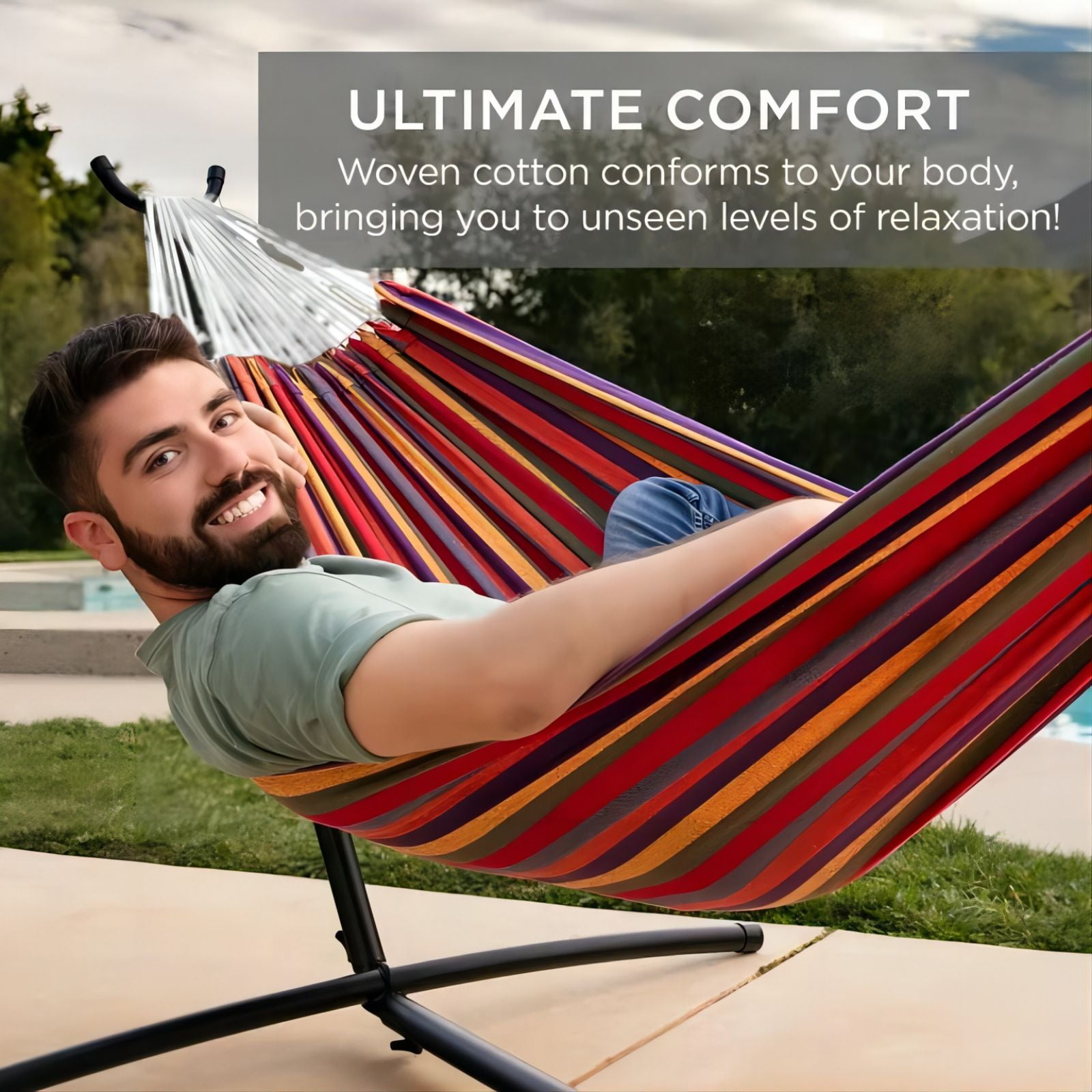 SUGIFT 2-Person Hammock with Space Saving Steel Stand and Portable Carrying Bag, 48″W x 120″ L, Red