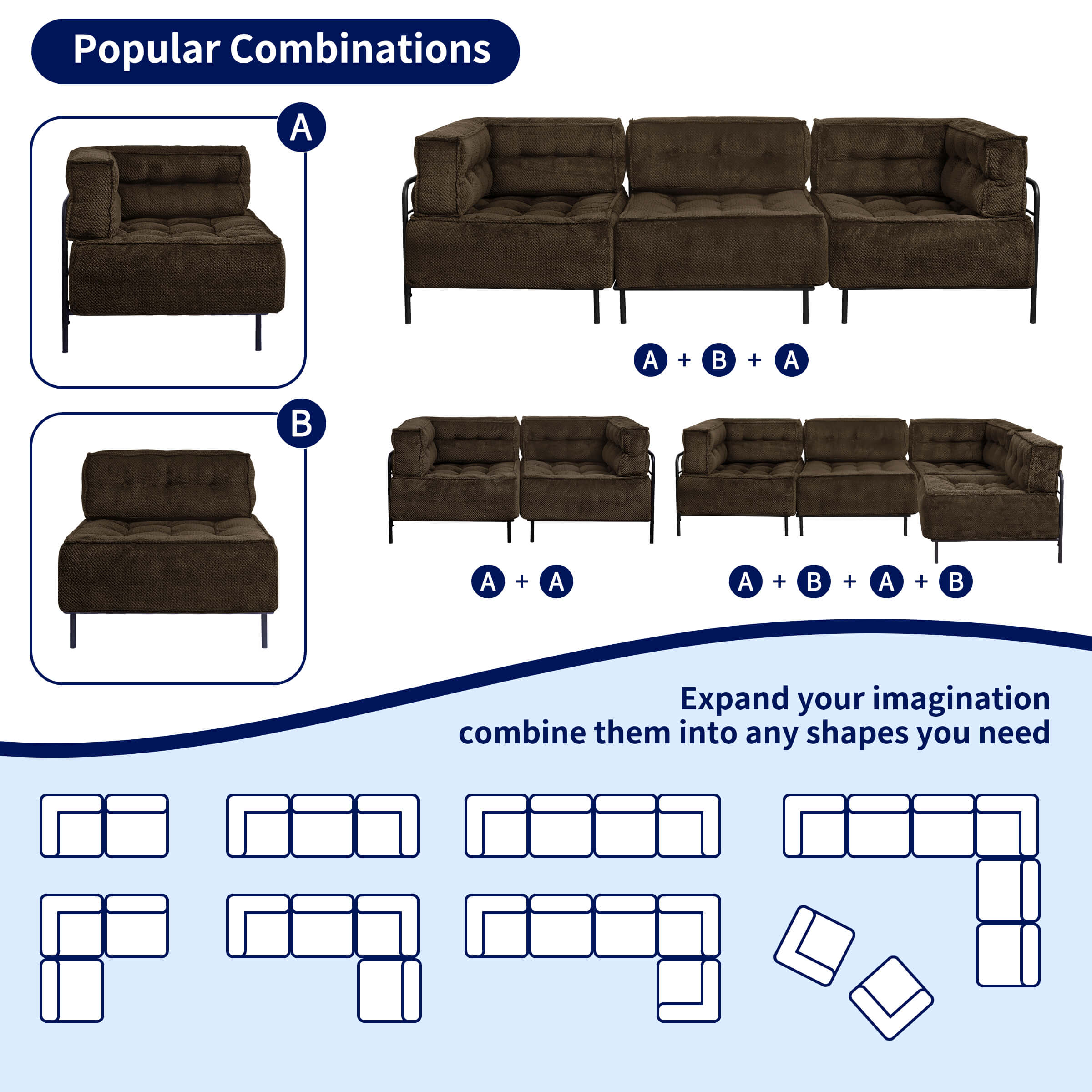 Subrtex Modern Short Plush L Shaped Sofa with Metal Legs, Brown
