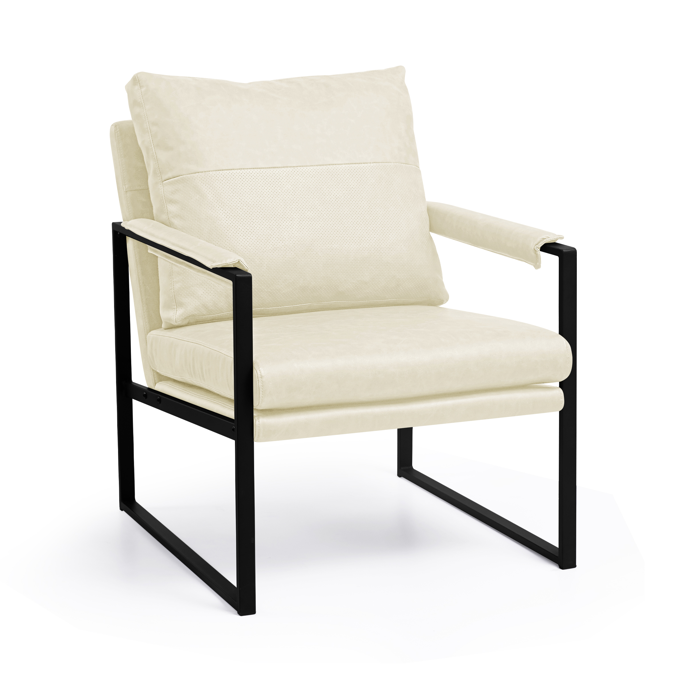 Subrtex Upholstered Modern Accent Chair with Metal Frame, Cream PU Leather