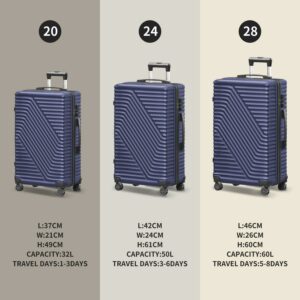 SUGIFT 3 Pcs Suitcase Luggage Set ABS Hardshell Hardside with TSA Lock, 20/24/28 inch Blue