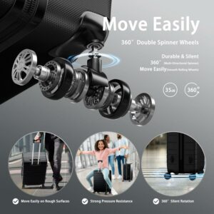 SUGIFT 3 Piece Luggag Sets Nested Spinner Suitcase with TSA Lock and 360° Spinner Wheels 20/24/28 inch Suitcase Sets, Black