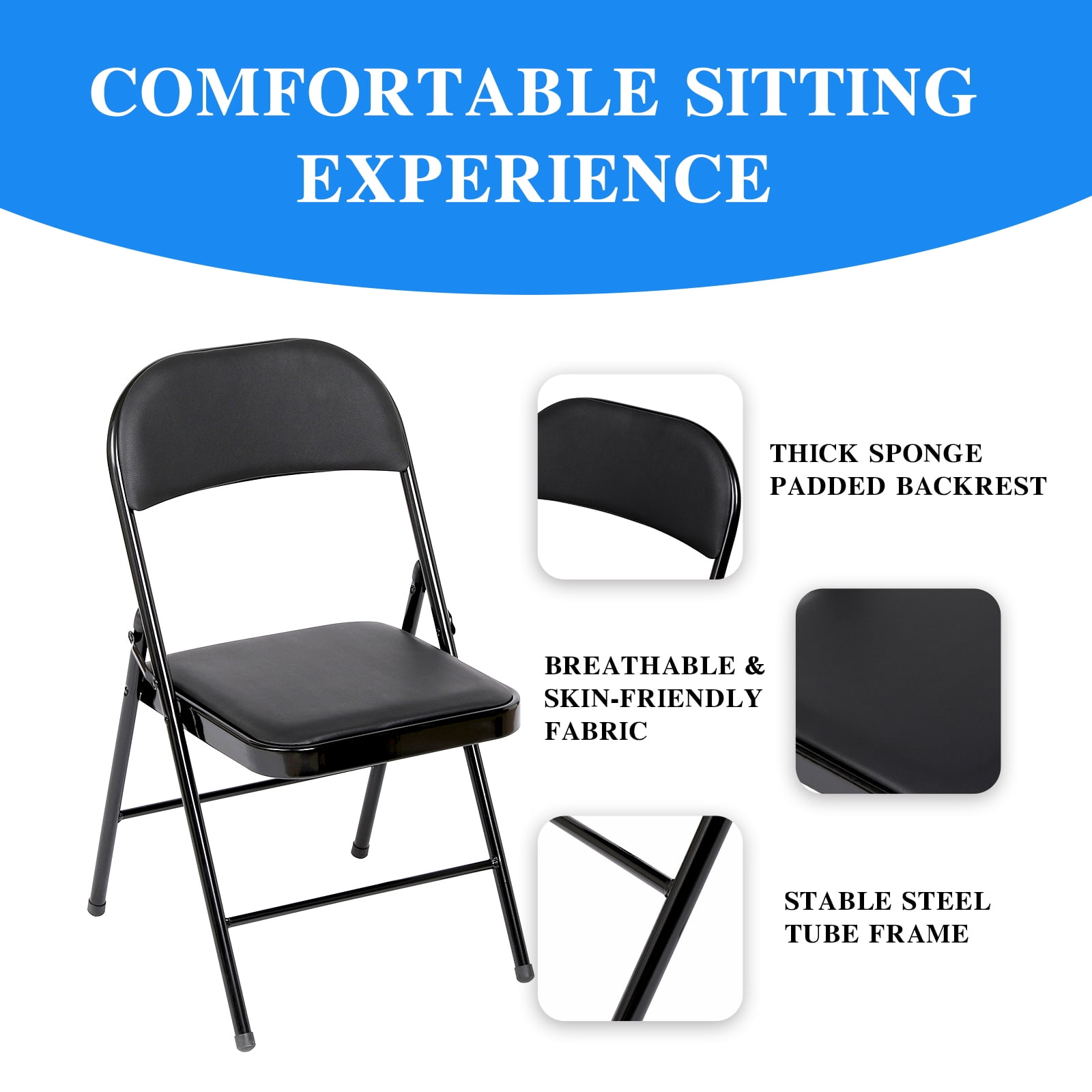 SUGIFT 4 Pack Folding Chairs Metal Frame Home Office Chairs, Black