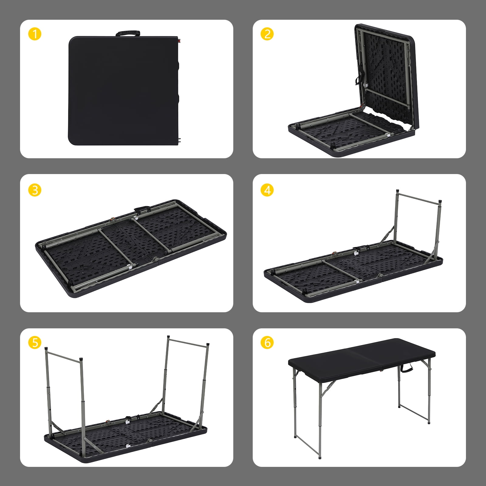 SUGIFT 4ft Folding Table, Adjustable Height Camping Table Office Table for Indoor/Outdoor Picnic Camping Bench, Black