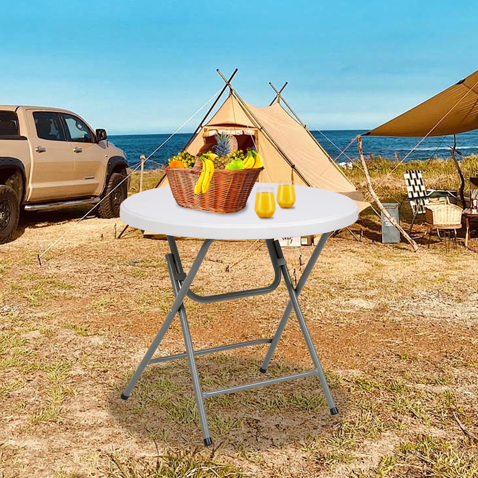 SUGIFT 32″ Round Folding Table for Indoor and Outdoor Use, White
