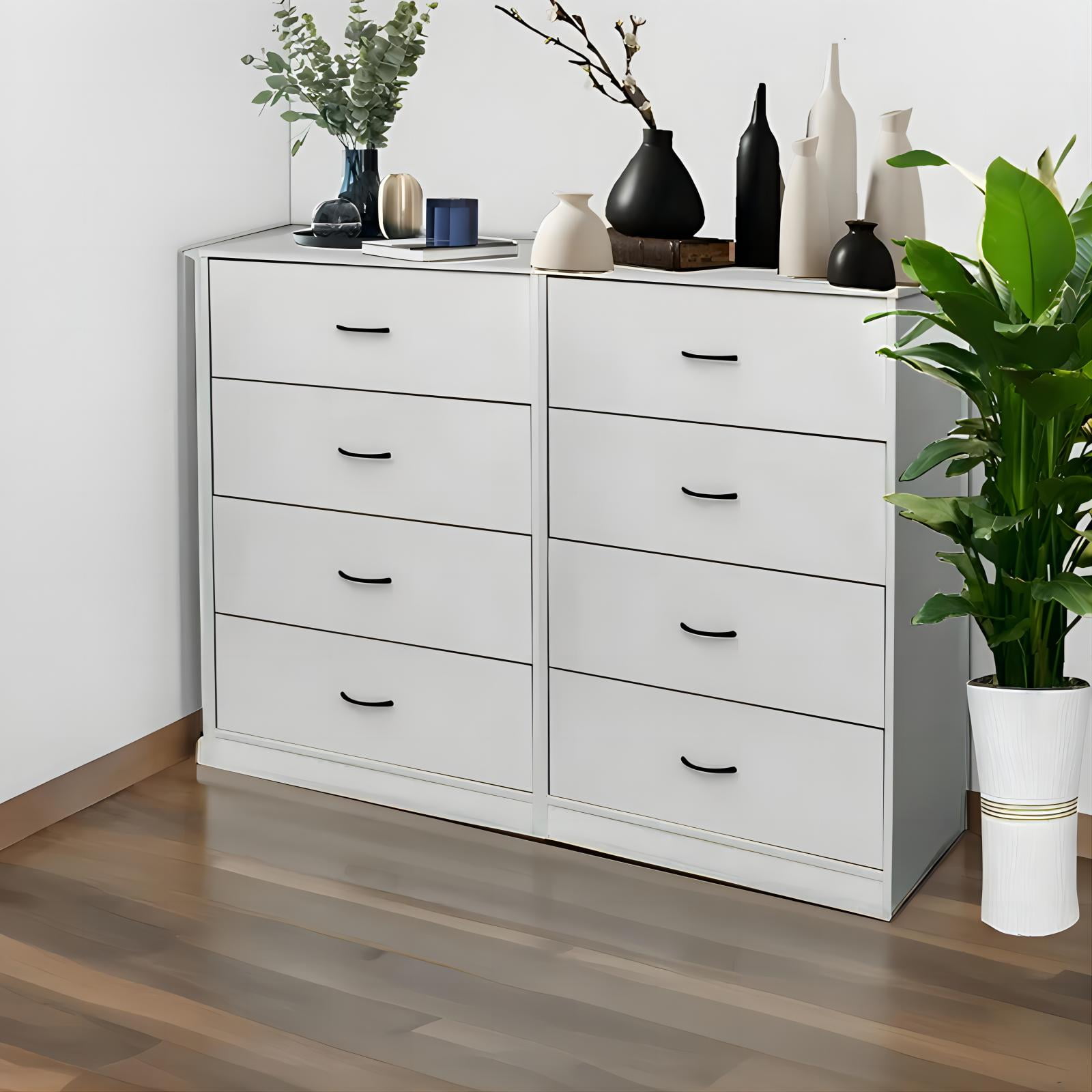 $93.74The modern and practical design of these chests of drawers makes them a perfect fit for contemporary interiors. With their stylish inlaid handle design, they are not limited to bedroom use but can be utilized anywhere in your home or office to store clothes, toys, and everyday objects. The dresser is constructed with durable and eco-friendly MDF wood honeycomb structure, ensuring a long lifespan and a safe environment for you and your family. The surfaces are treated to add an elegant touch to any space. With its sturdy construction and high load capacity, this free-standing cabinet is suitable for various areas such as the bathroom, living room, bedroom, or kitchen. The four drawers provide ample storage to organize items like cosmetics, toiletries, towels, and toilet paper, offering versatile storage solutions while keeping your belongings hidden and easily accessible. Specifications: Color: Light Gray Material: MDF Drawer Glide Material: Metal Size: 40.16″ H x 27.72″ W x 15.67″ D Drawer Size: 25.8″ L x 11.8″ W x9.2″ H Number of Drawers: 4 MODERN & PRACTICAL DESIGN: These Chests Of Drawers Look Excellent And Would Fit Perfectly In To Any Contemporary Style Interior. This Chest Of Drawers Has a Stylish Inlaid Handle Design That Is Not Only For Bedroom Use But Can Be Used Anywhere You Need To Store Clothes, Toys And Other Everyday Objects In Your Home Or Office. HIGH QUALITY:Dresser Is Made Of Durable And Environment-Friendly Mdf Wood Honeycomb Structure For Long Use Life, Eco-Friendly Material Provides You And Your Family a Safe And Healthy Environment. All Exposed Surfaces Are Fully Treated To Add An Elegant Touch To Any Space. STEADY AND STURDY: Free Standing Cabinet Constructed In a Solid Structure With High Load Capacity, Meet Your Basic Storing Requirement. Simple And Stylish Design Make It Fits In Many Places Like Bathroom, Living Room, Bedroom Or Kitchen. GREAT ORGANIZER: 4 Drawers For You To Organize Different Items Like Cosmetics, Toiletries, Towels, Toilet Paper, Etc, Offers Versatile Storage Solutions, Hidden Your Messy Stuffs And Fetch Items Easily. Easy Assembly & First-Rate Service: This modern bedroom chest of drawers comes with all tools needed and clear step-to-step instructions. We are committed to providing the best products and services, please feel free to contact us Package Contents: 1 x Light Gray Dresser for Bedroom 1 x Instructions Manual 1 x Accessory Kit
