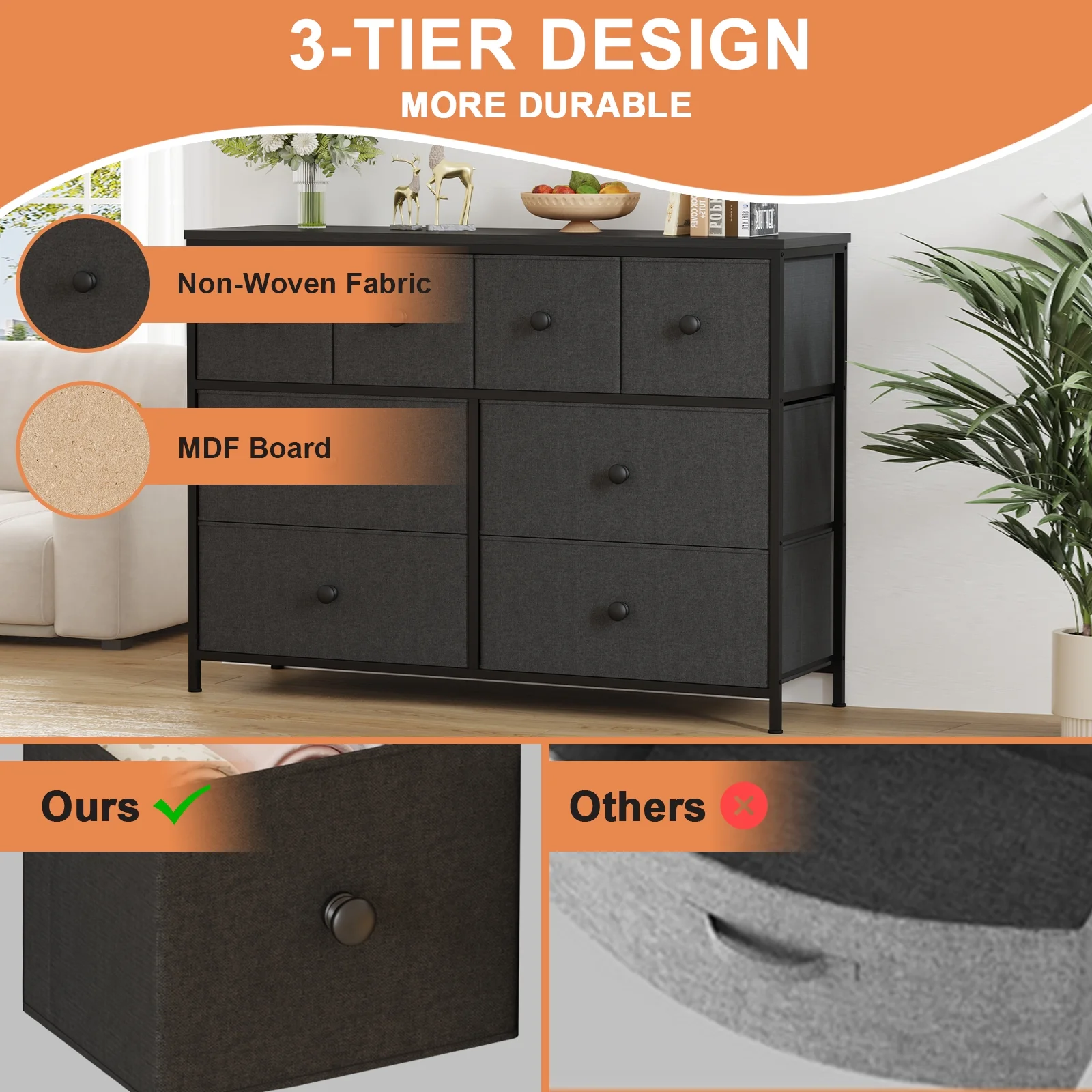 SUGIFT 8 Drawer Dresser Chest of Drawers for Bedroom Fabric Drawer for Kids and Adult Black Gray