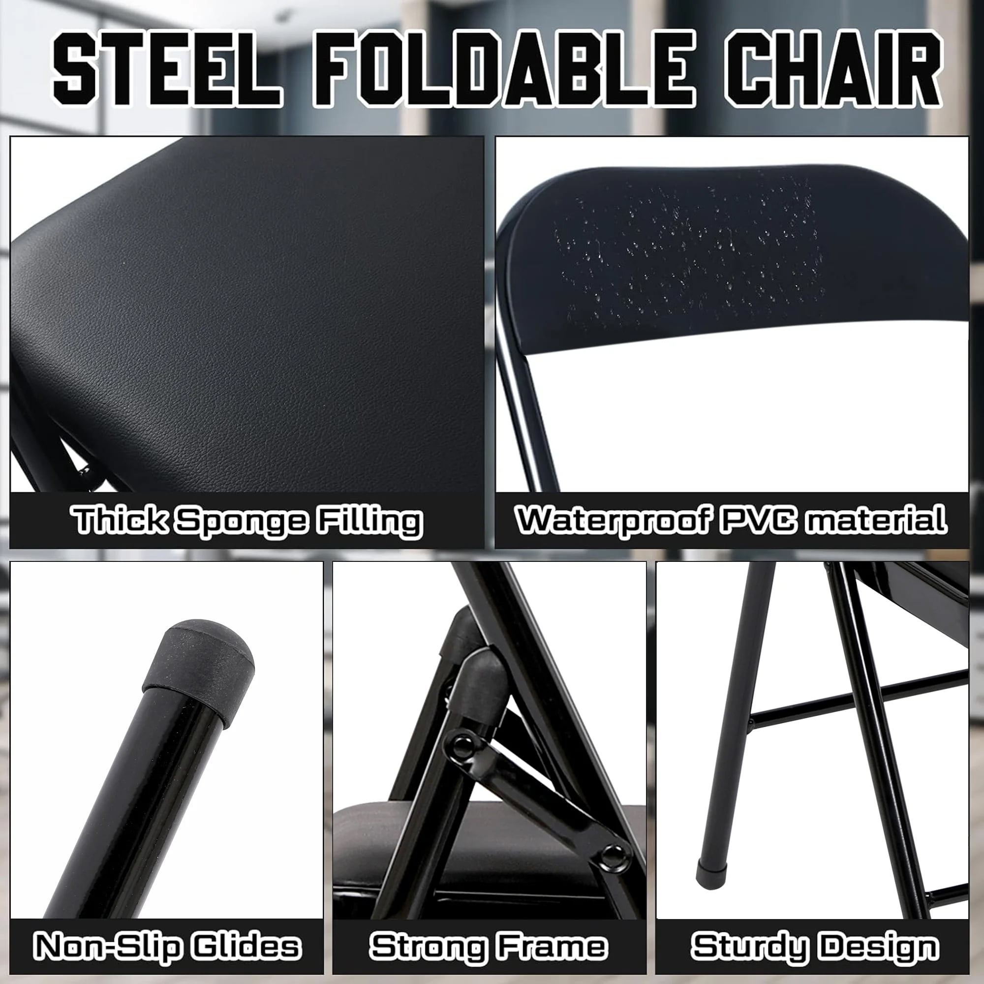 SUGIFT Deluxe Padded Seat and Metal Back Folding Chairs, Black, 6 Pack
