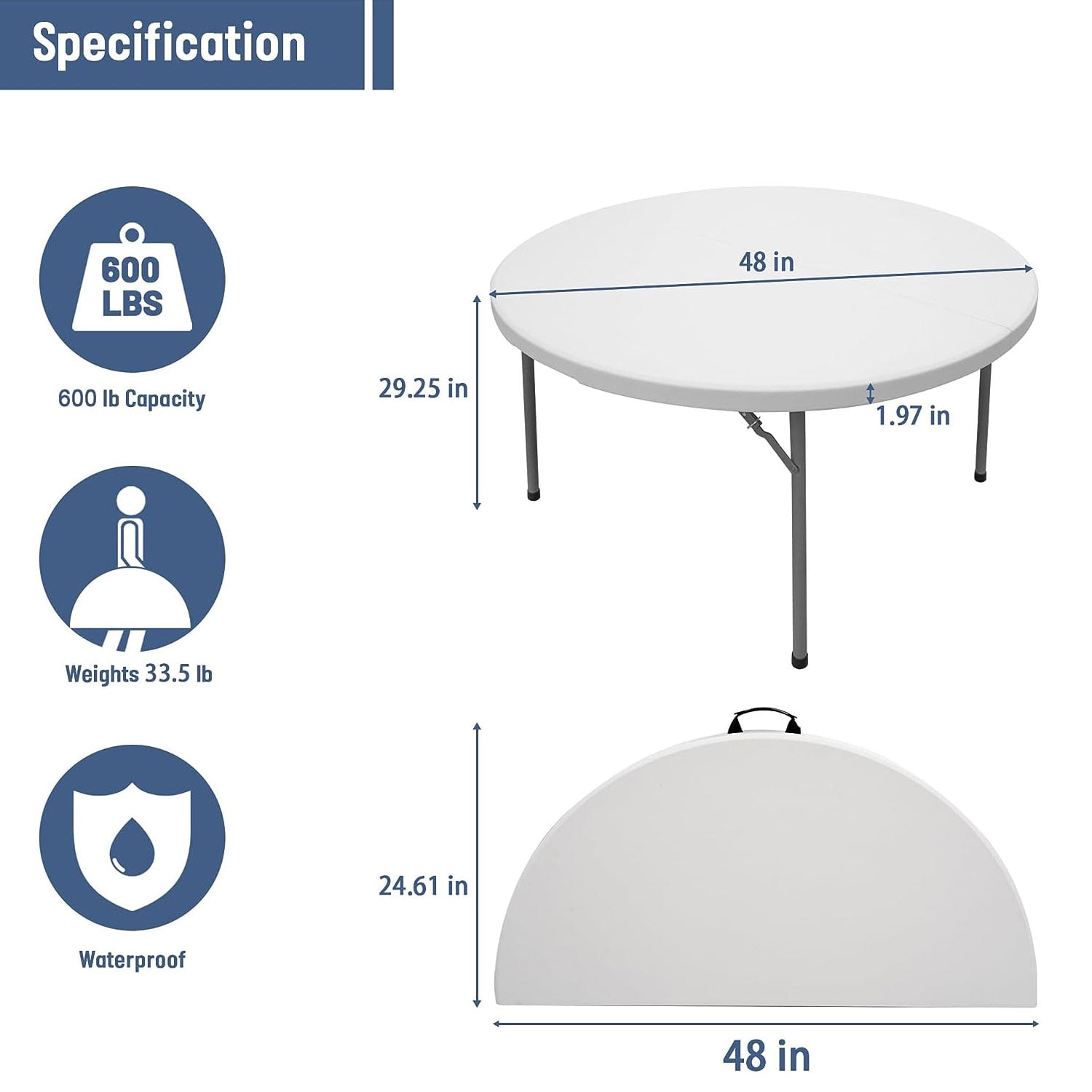 SUGIFT 4FT Portable Round Folding Table for Kitchen or Outdoor Party Wedding Event, White Granite