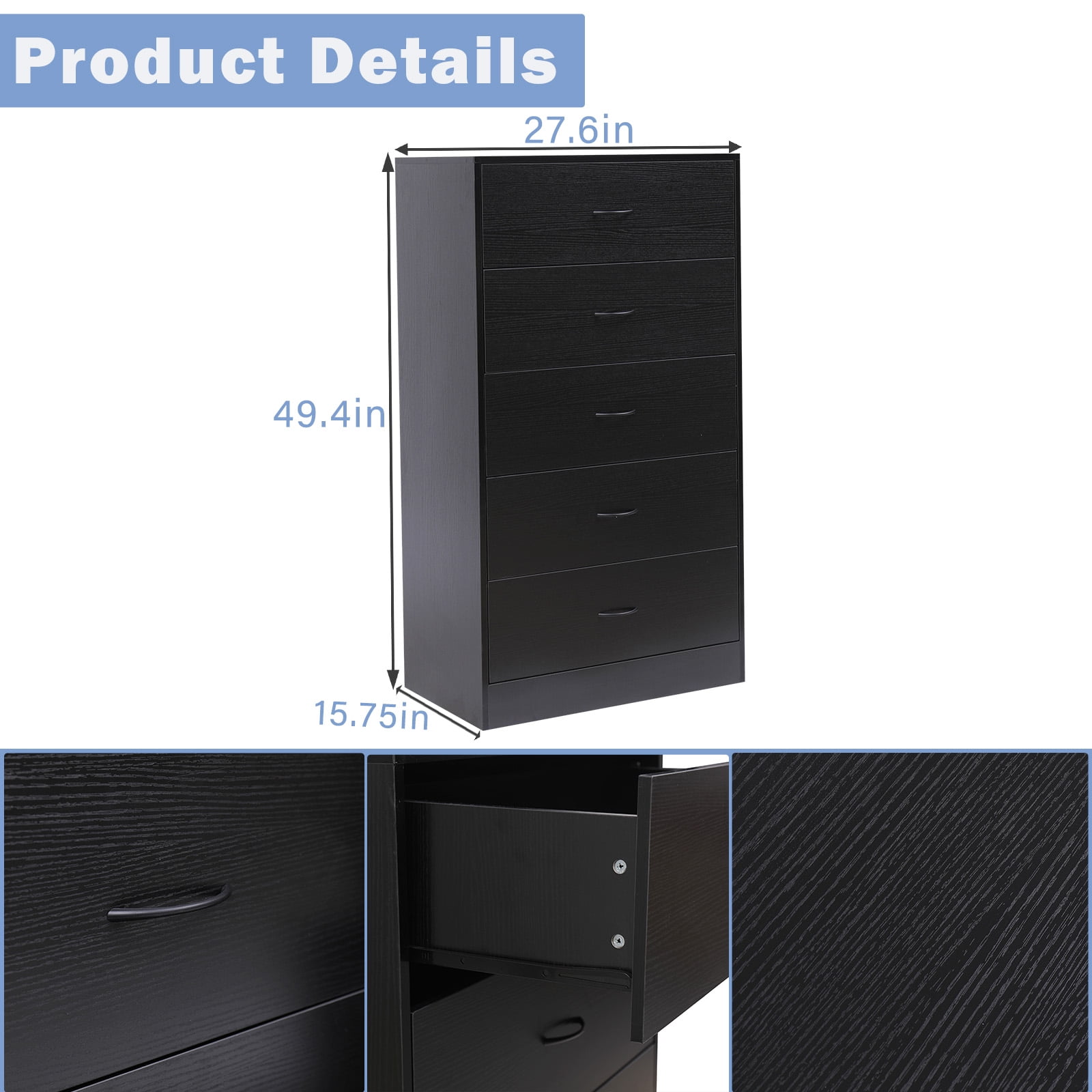 SUGIFT 5 Drawer Dresser Black Dresser Chest for Bedroom
