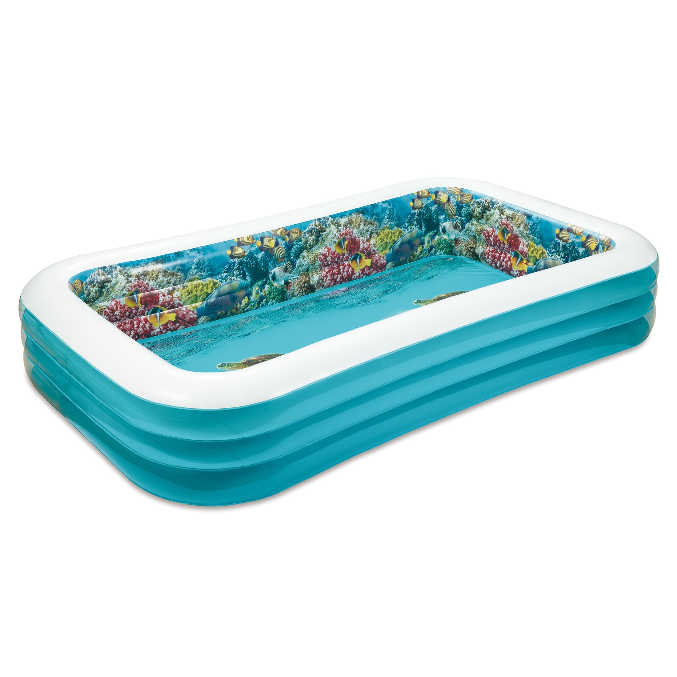 Summer Waves Inflatable Dolphin 3D Family Pool, Rectangular, Blue, Ages 6+, Unisex
