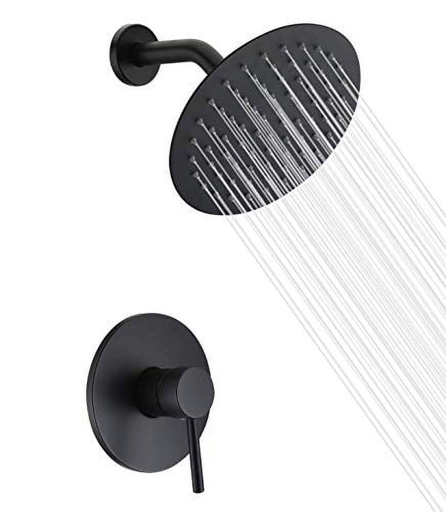 $69.65Faucet type: Matte Black Shower Faucet Set Feature: 1 Handle Shower FaucetTheme: Modern, Contemporary Finish: Matte BlackMounting type: Wall mount Number of Handles: One Handles Material: Metal Handle style: Lever Shower Arm Reach: 5-13/16 Inches Showerhead Width: 8 Inches Showerhead Length: 8 Inches Valve Type: ? 40 Ceramic Cartridge Faucet Body Material: Brass Escutcheon Material: Stainless Steel Diverter included: Yes Diverter location: Rough-in Valve Showerhead Type: Rain Shower Showerhead shape: Ultra-thin Square Showerhead function: Single Function Showerhead Material: Stainless steel Showerhead Flow rate: 2.2 GPM Net Weight: 2,64lbs Gross Weight 3,08lbs Packing box L x W x H:8-27/32″x 8-15/32″x 6-11/16″