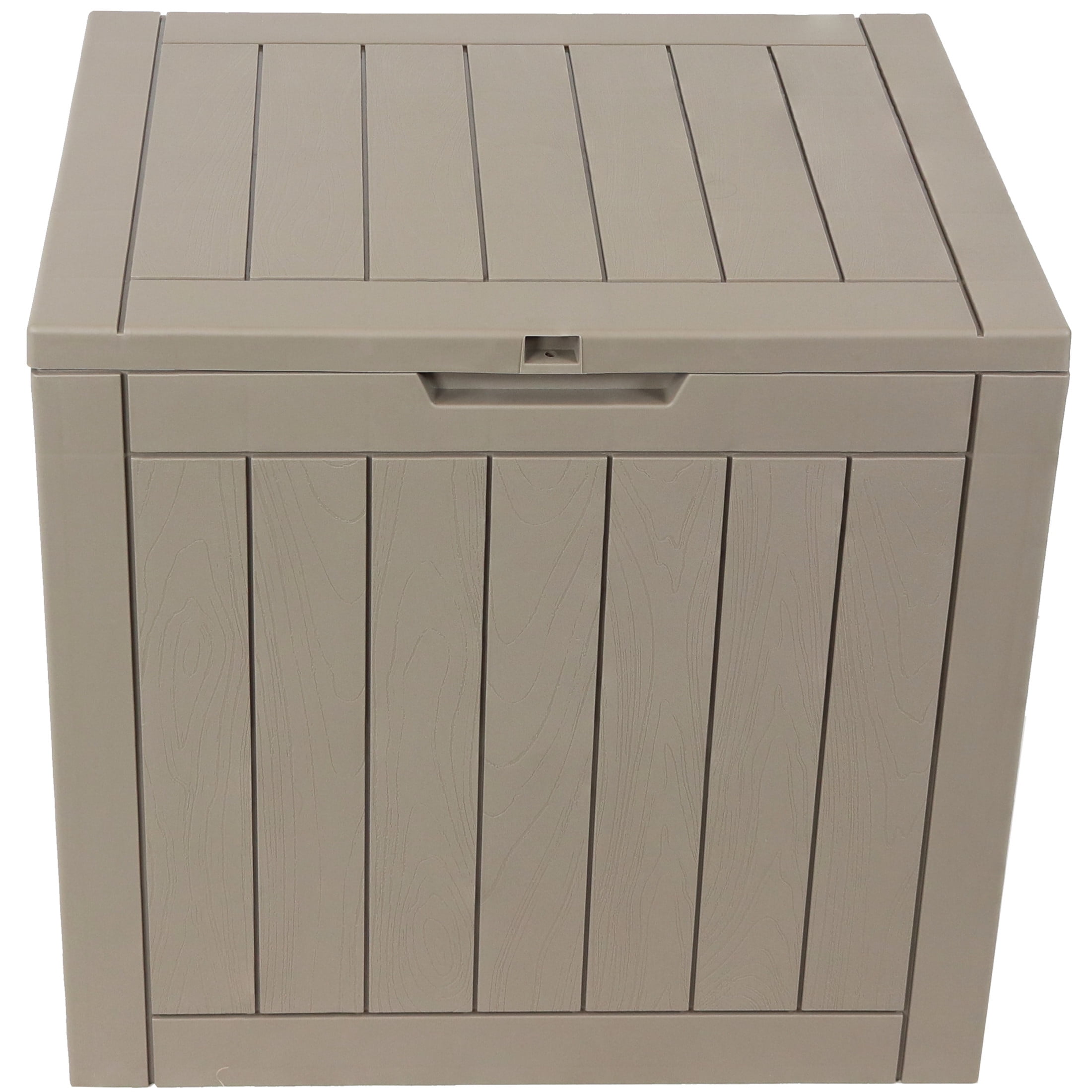$72.20This outdoor deck storage box will easily store patio cushions, pillows, garage tools, pool toys, and so much more on any patio, deck, sunroom, or poolside. This storage box features a woodgrain design and polypropylene resin construction that is weather-resistant and UV-protected for long-lasting strength and beauty. This storage box is built to withstand the elements outdoors, ensuring a low-maintenance, long-lasting investment. The lid is lockable to protect the items stored within the box. Please note, a padlock is not included with the storage box and must be purchased separately. Side handles featured on this storage box make the box easy to relocate, more, or store as needed. Keep all your favorite things safe this this storage box: stow away seasonal decorations, toys from the pool without worrying about water damage to the box, or other tools and items you want to have on hand with this woodgrain designed and weather-resistant storage box.