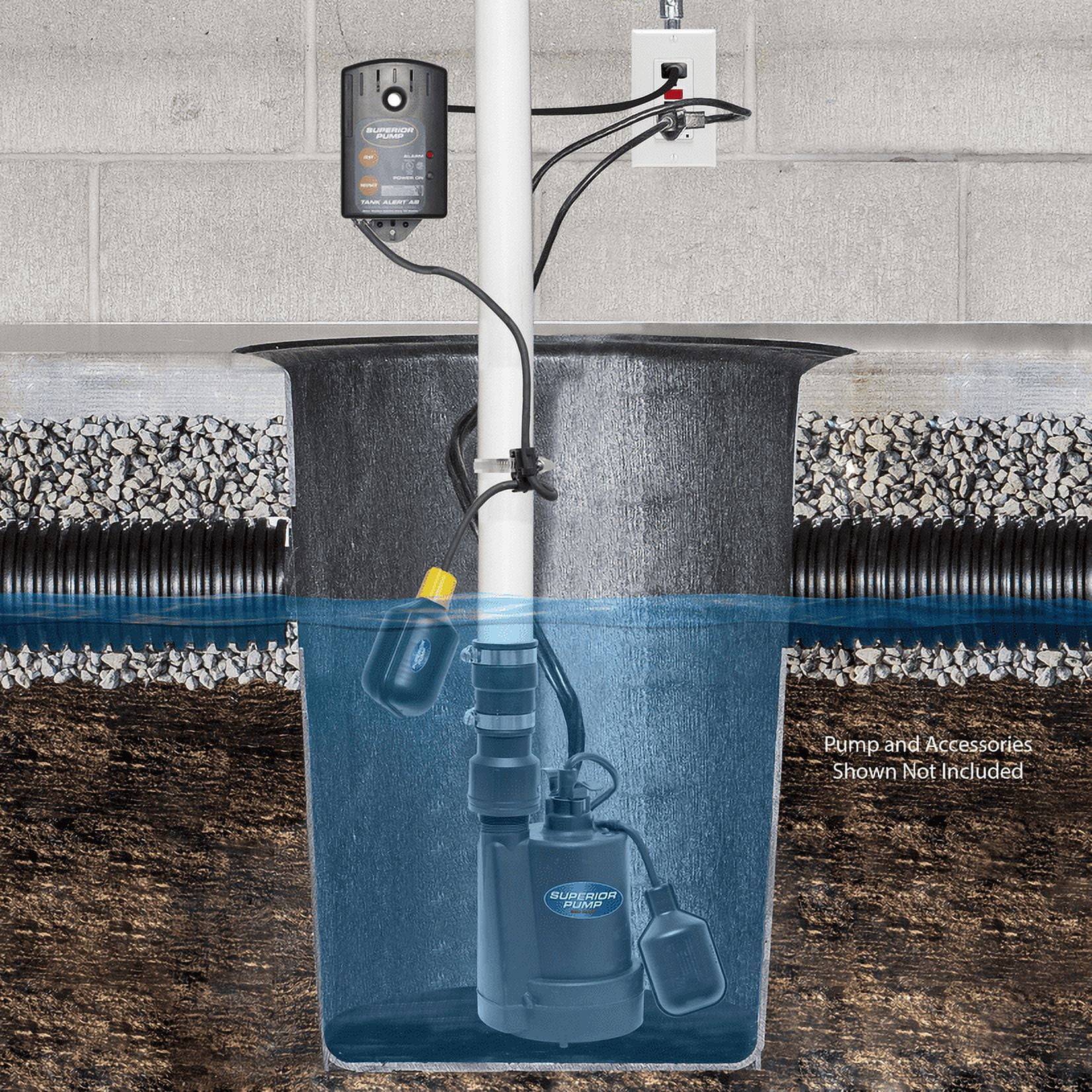 Superior Pump 92060 Tethered Water Alarm System for Utility Water Sump Pump, 87 Decibel, 9 Volt