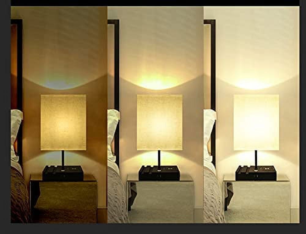 $48.15SUNTHIN Table lamp with 6W Bulb and fabric shade. The Table Light includes warm white 2700K 6W LED Edison bulb to produce soft warm light . the beige lampshade provides more soft brightness to protect your eyes. As long as the power has plugged in the socket, your other devices can plug the 2-prong outlet to use, which reduce the plug base and avoid entanglement of the wires.The bedroom lamp provides 3-level brightness choices(Low, Medium, High), simply tap anywhere at the metal lamp base to adjust the lighting to meet your demands.The dimmable table lamp designed with two phones holders on the lamp base, you can put the phone on the base when charging the phone/watching the film.